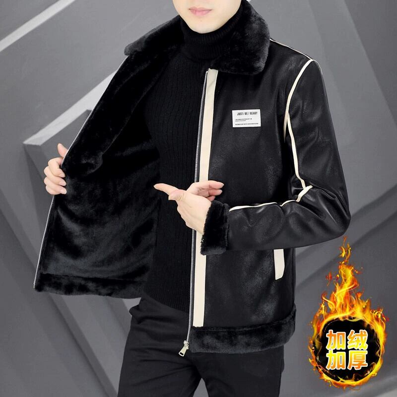 毛皮オールインワンジャケットメンズ冬ベルベット肥厚鹿革レザージャケット模造毛皮ジャケットミンクベルベット綿服 コットン ウィンター 冬物 undao47173395185