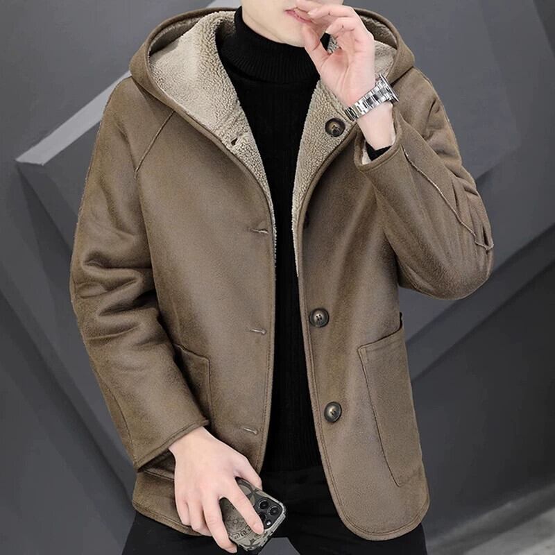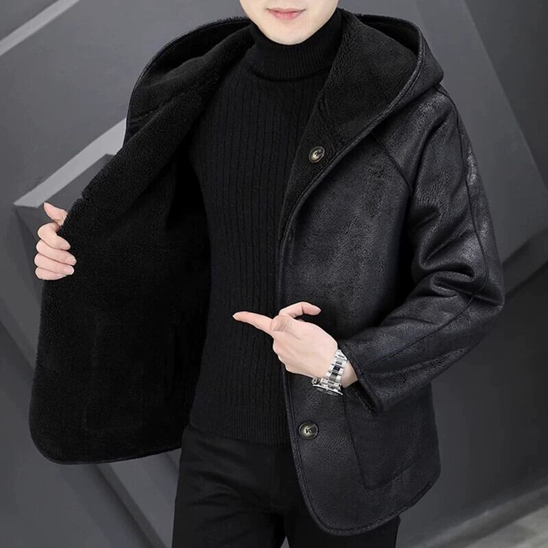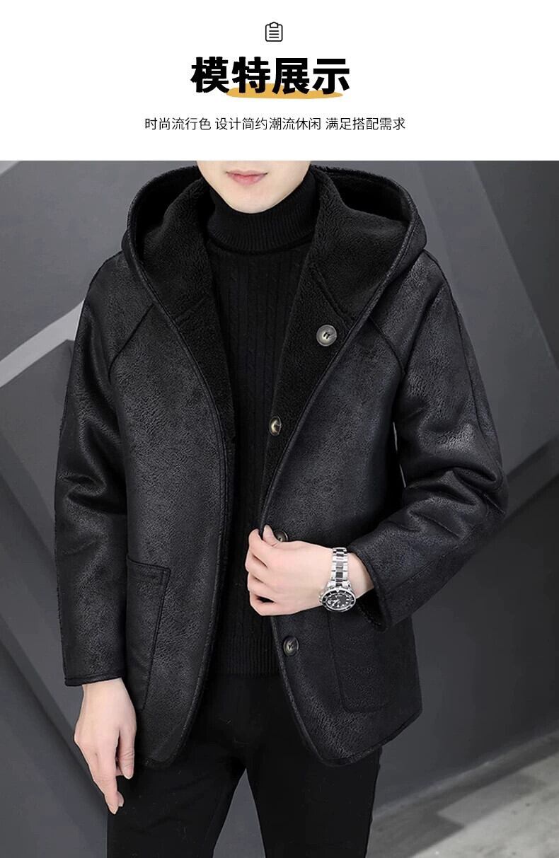 フード付きファー粒子シェルパ複合ファーワンピースジャケットメンズ肥厚リバーシブルイミテーションムートンレザージャケット undao2347508883