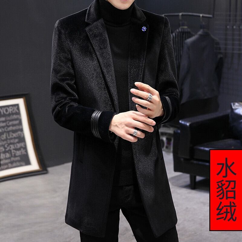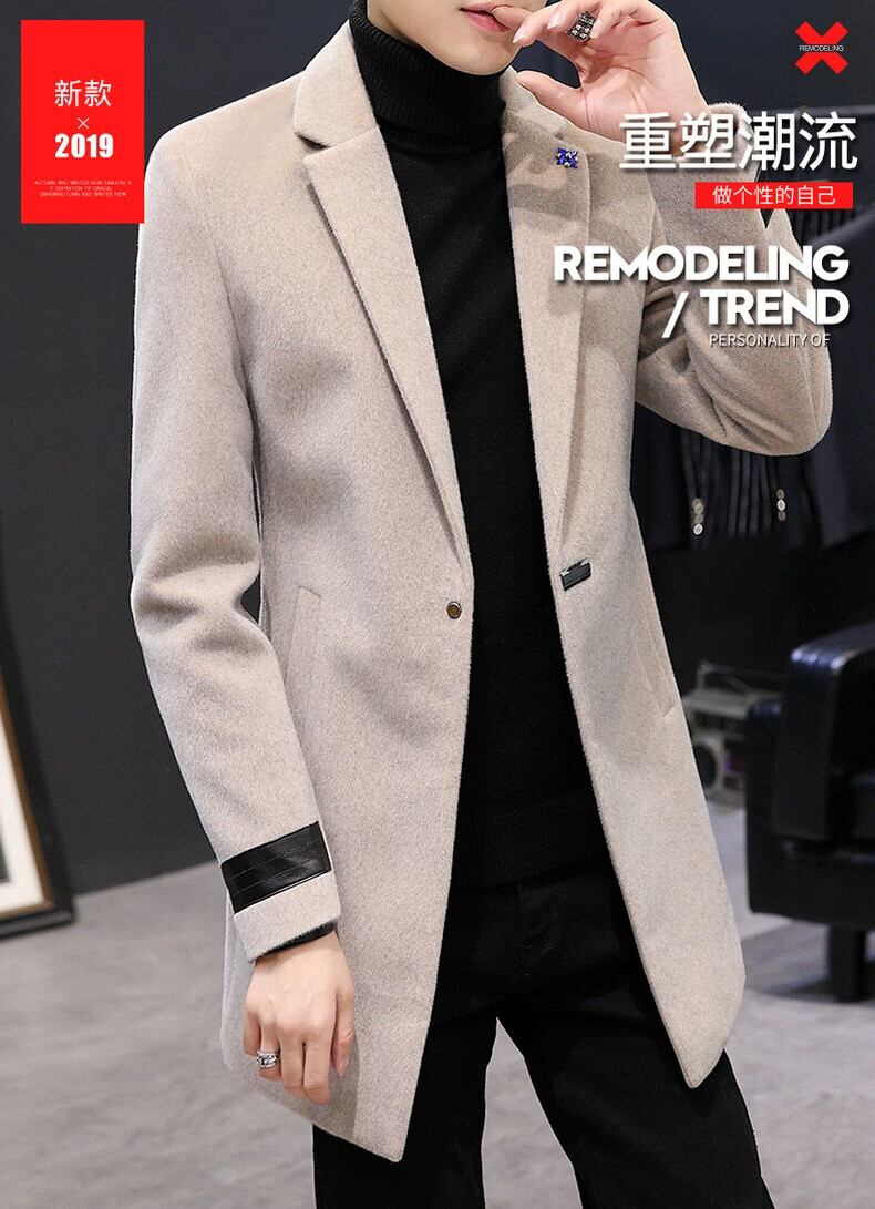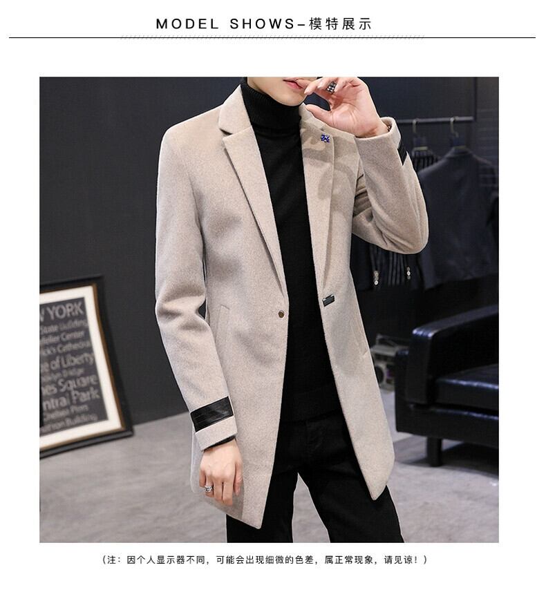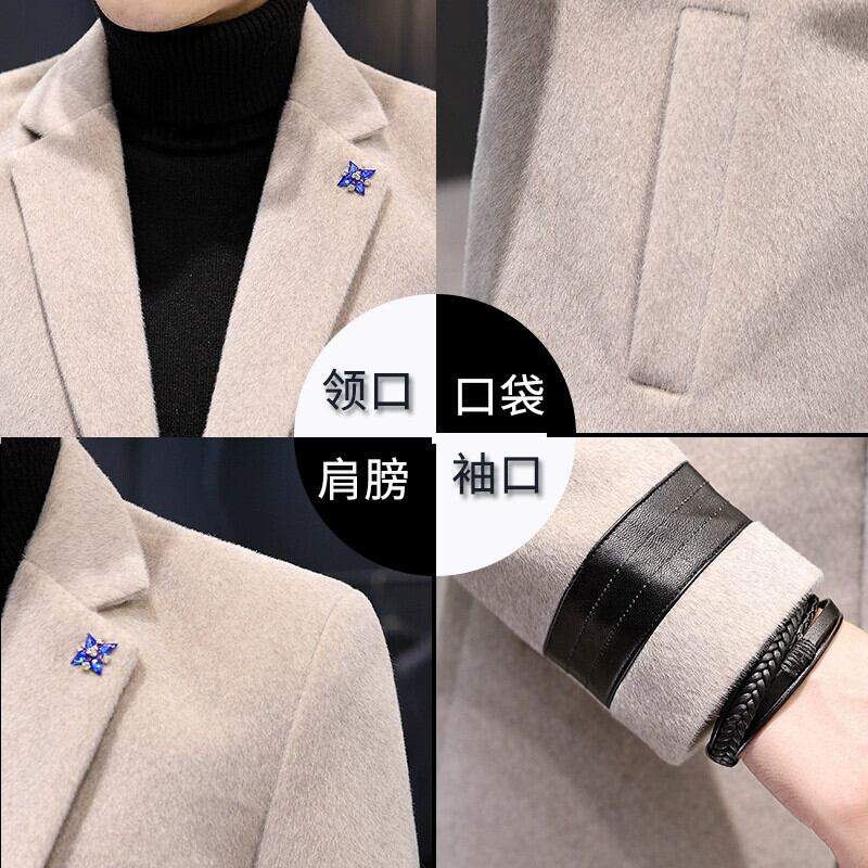 冬のウールコートメンズミドル丈膝上スーツカラーミンクウールウインドブレーカーコート、コットンと厚みのあるトレンド ウィンター 冬物 undao48960751354