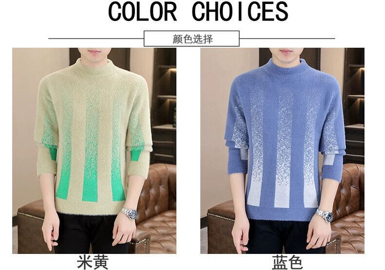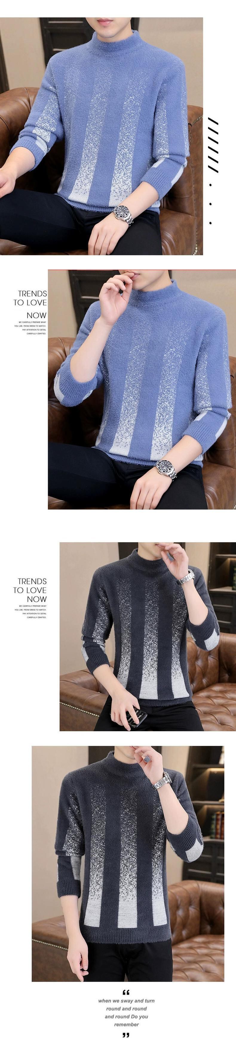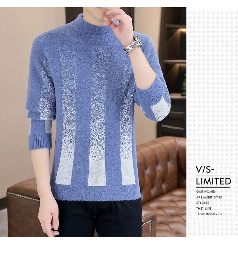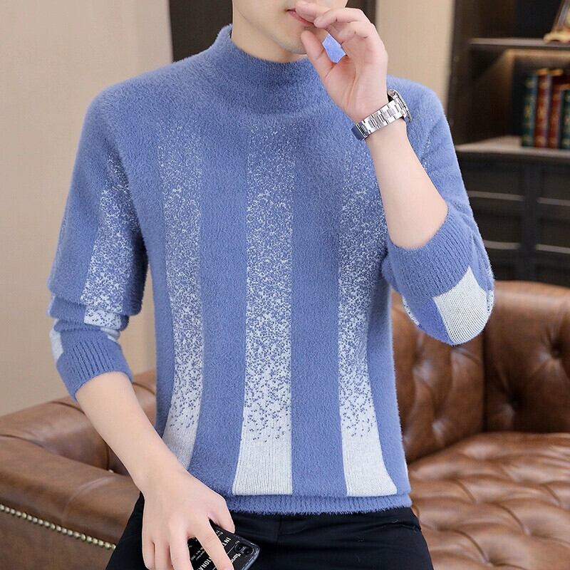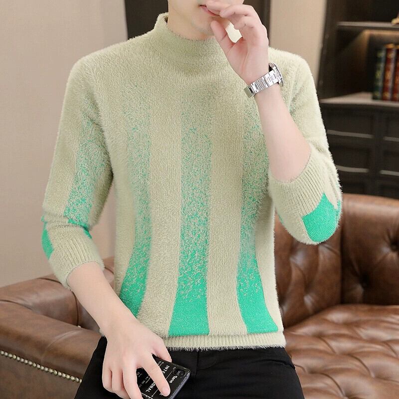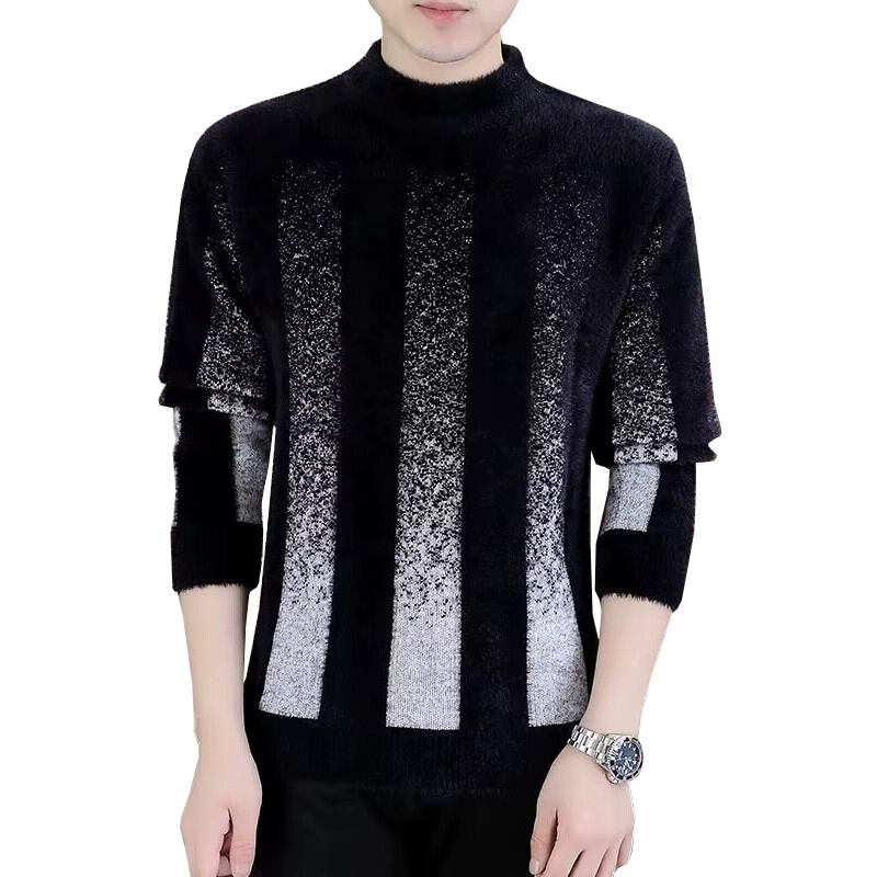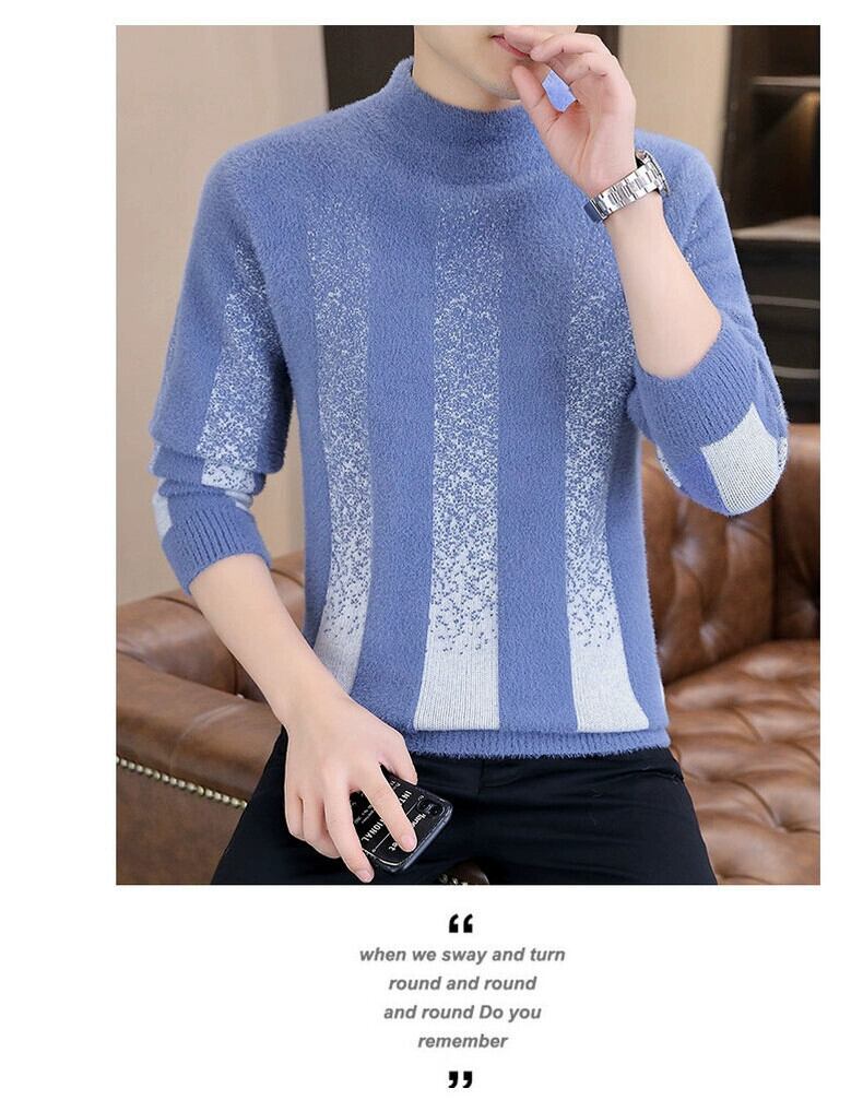 パーソナライズされた汎用性の高い秋冬用メンズミンクベルベットセーター、スリムで厚みのあるハーフタートルネックボトムシャツ、ストライプの暖かいセーター オータム 秋物 ウィンター 冬物 undao93399593381