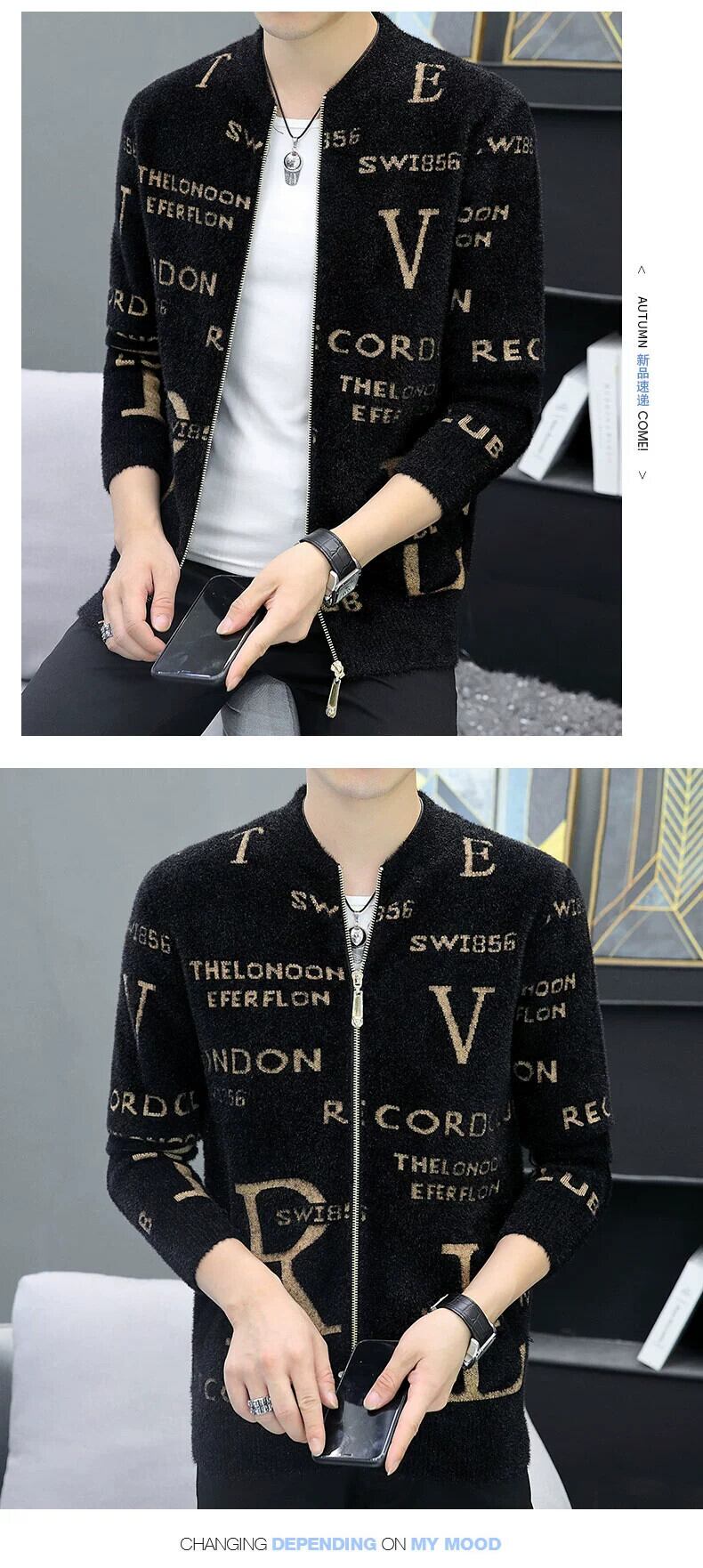 2023 新しい秋と冬のニットカーディガンカジュアルジャケットメンズトレンディなミンクベルベットスリムセータージャケットトップ服 オータム 秋物 ウィンター 冬物 undao267930080