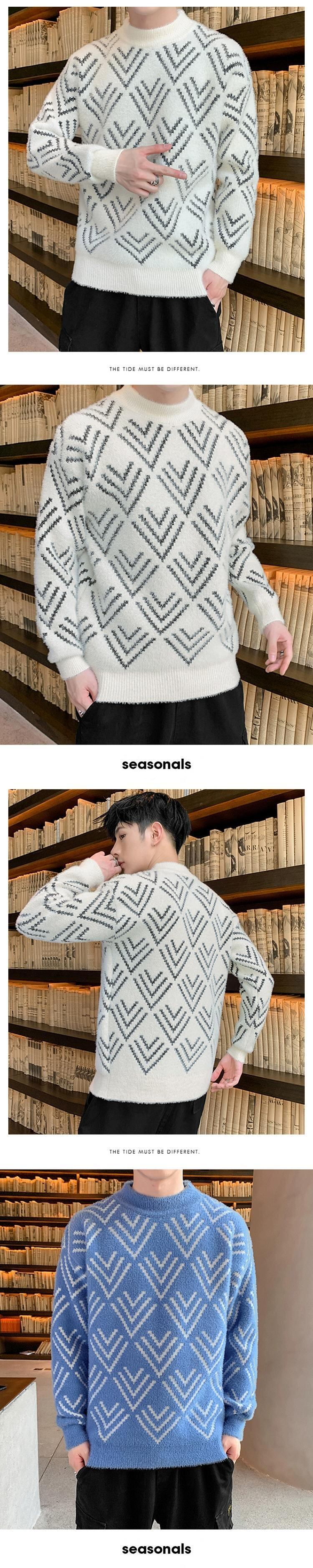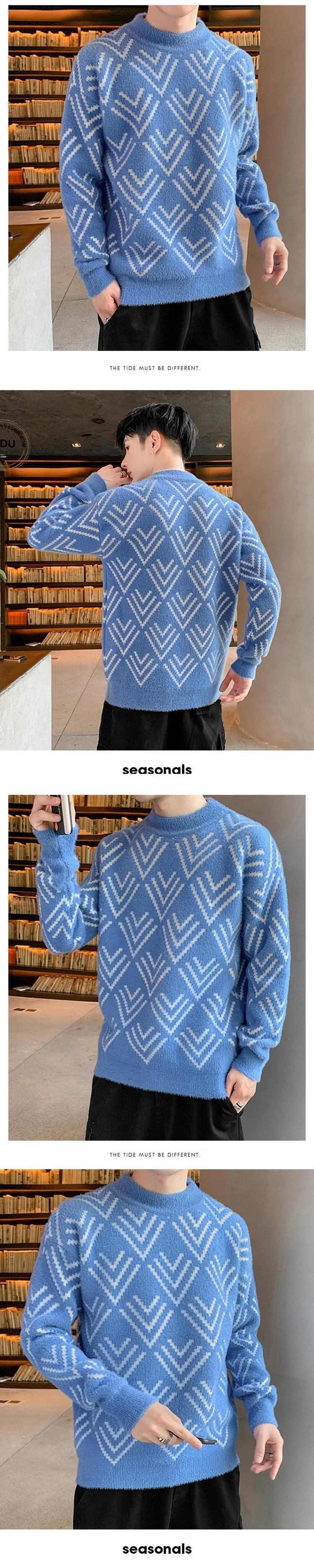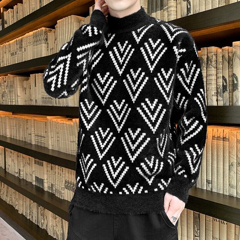 ハーフタートルネックセーターメンズ 2023 厚みのある秋と冬の学生ミンクベルベット底セーター オータム 秋物 ウィンター 冬物 undao18414104255