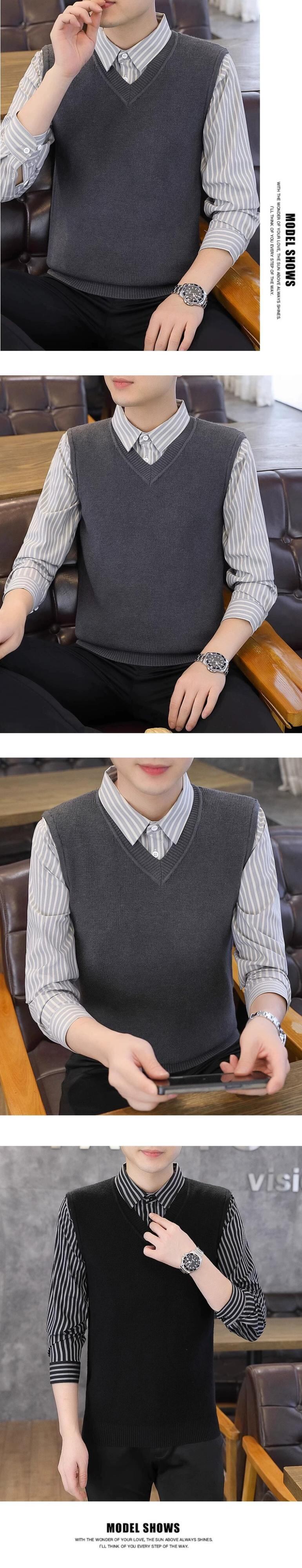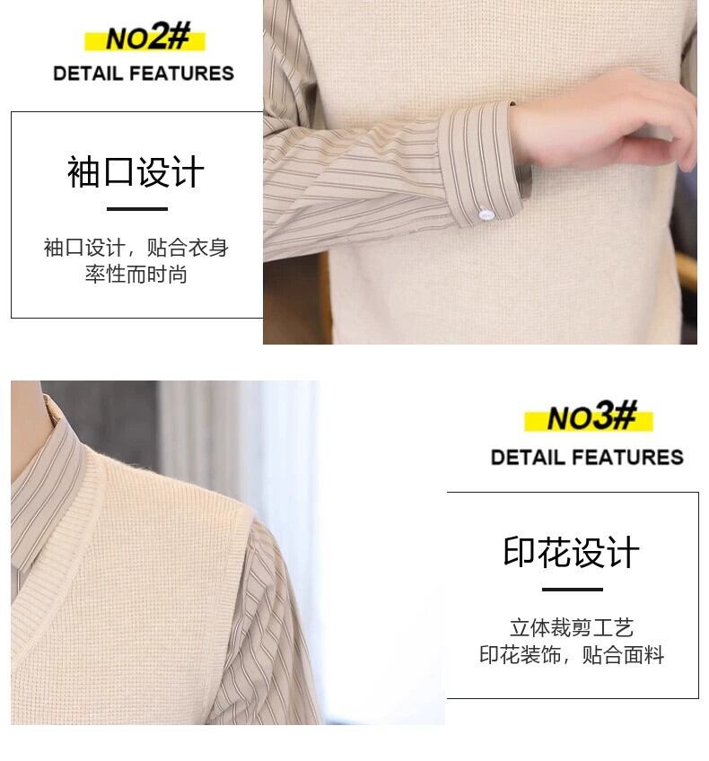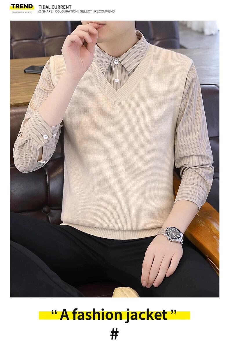 フェイクツーピースセーターメンズ秋と冬スリムセータービジネスカジュアルeseシャツ襟ニットボトリングシャツ男性 オータム 秋物 ウィンター 冬物 undao53706271794
