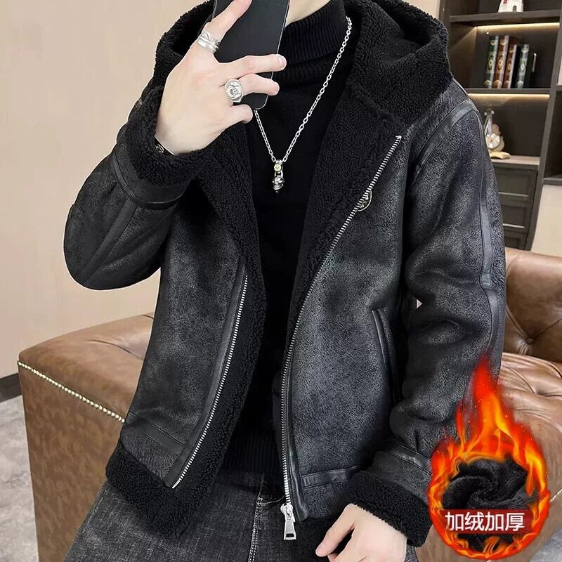 バックスキンベルベットジャケットメンズフード付きトップス秋と冬のベルベット肥厚コットンコート若者カジュアルショートジャケット オータム 秋物 ウィンター 冬物 undao63120129625