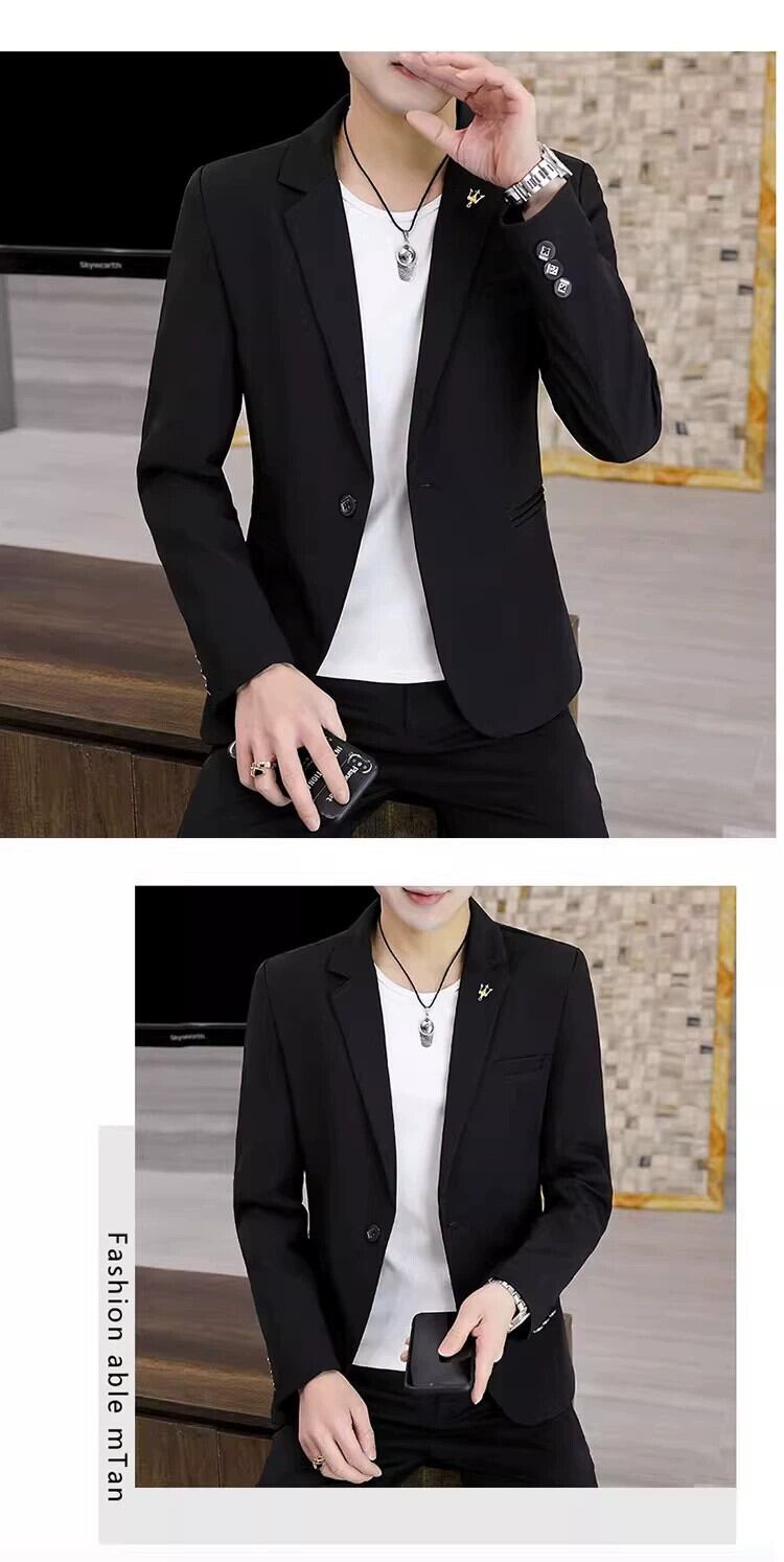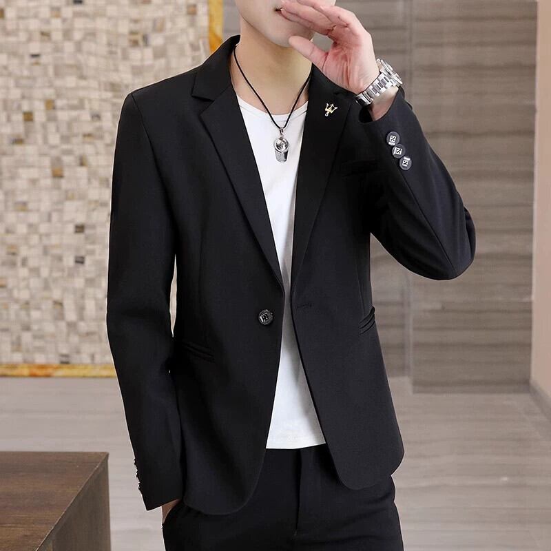 2023 新しいスーツスーツメンズ無地スーツカジュアル長袖ハンサムバージョンビジネススリム薄型ジャケットトレンディな ロング ソリッドカラー undao72472301328