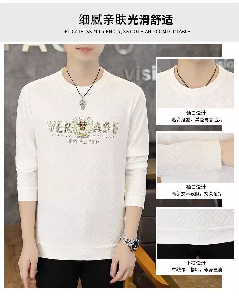 ヨーロッパダイヤモンド刺繍カジュアルスウェットシャツメンズトレンディなシンプルファッション2023春と秋の新しいメンズトップスとボトムスシャツ レッド スプリング 春物 オータム 秋物 ヨーロピアン undao83619664504