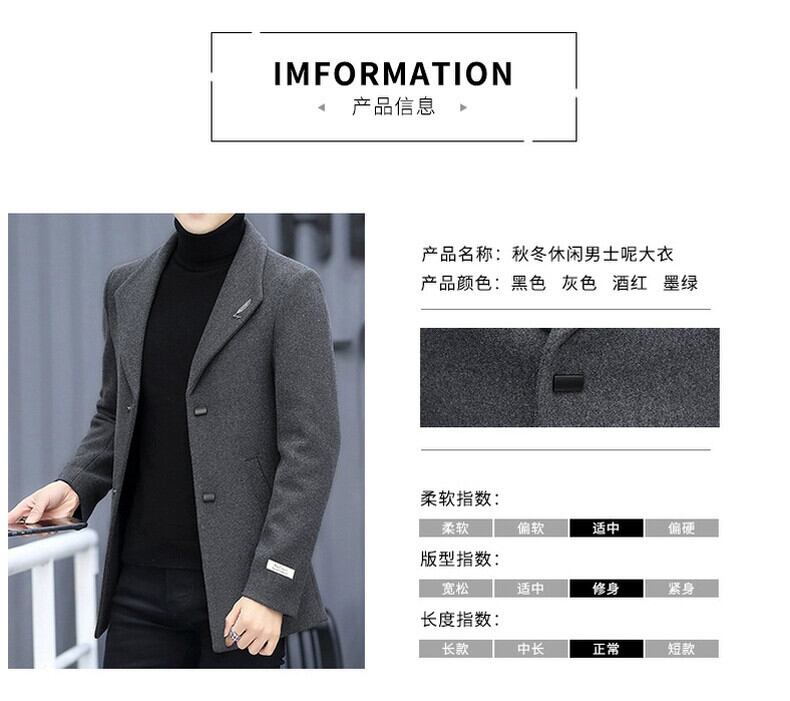 秋冬ウールウールコートメンズ厚手スーツスタイルトレンディメンズショートウインドブレーカー大人安定の厚手コート オータム 秋物 ウィンター 冬物 undao30289510455