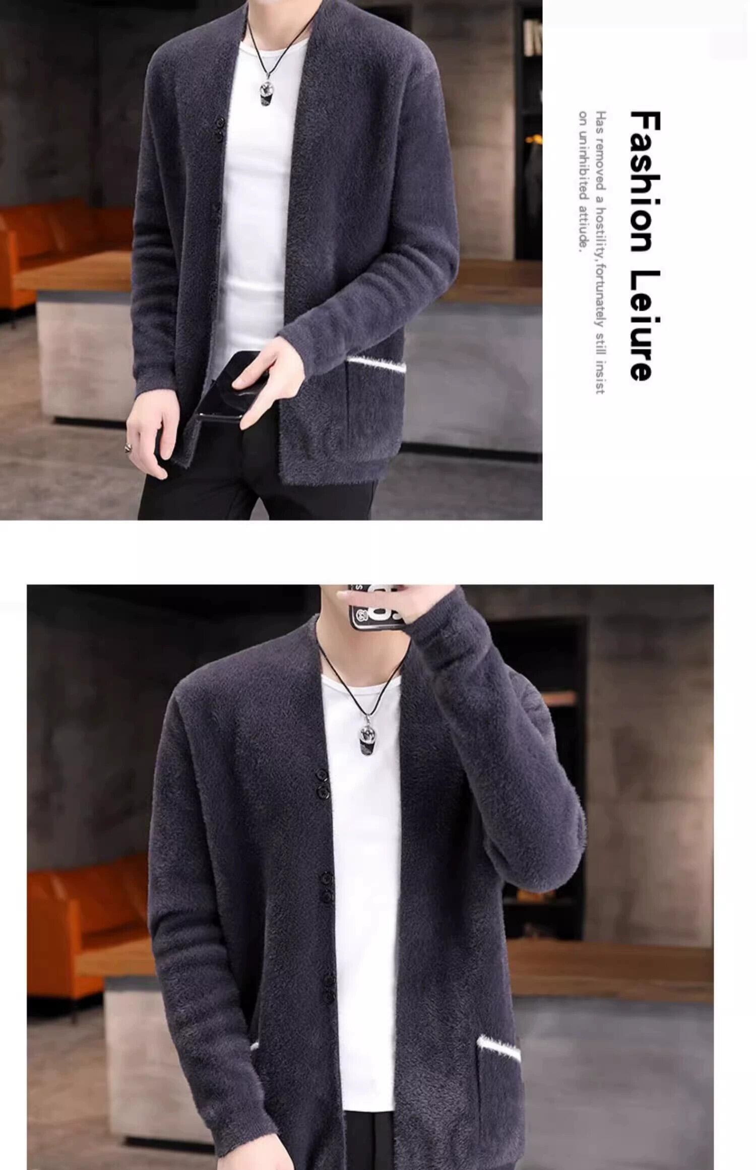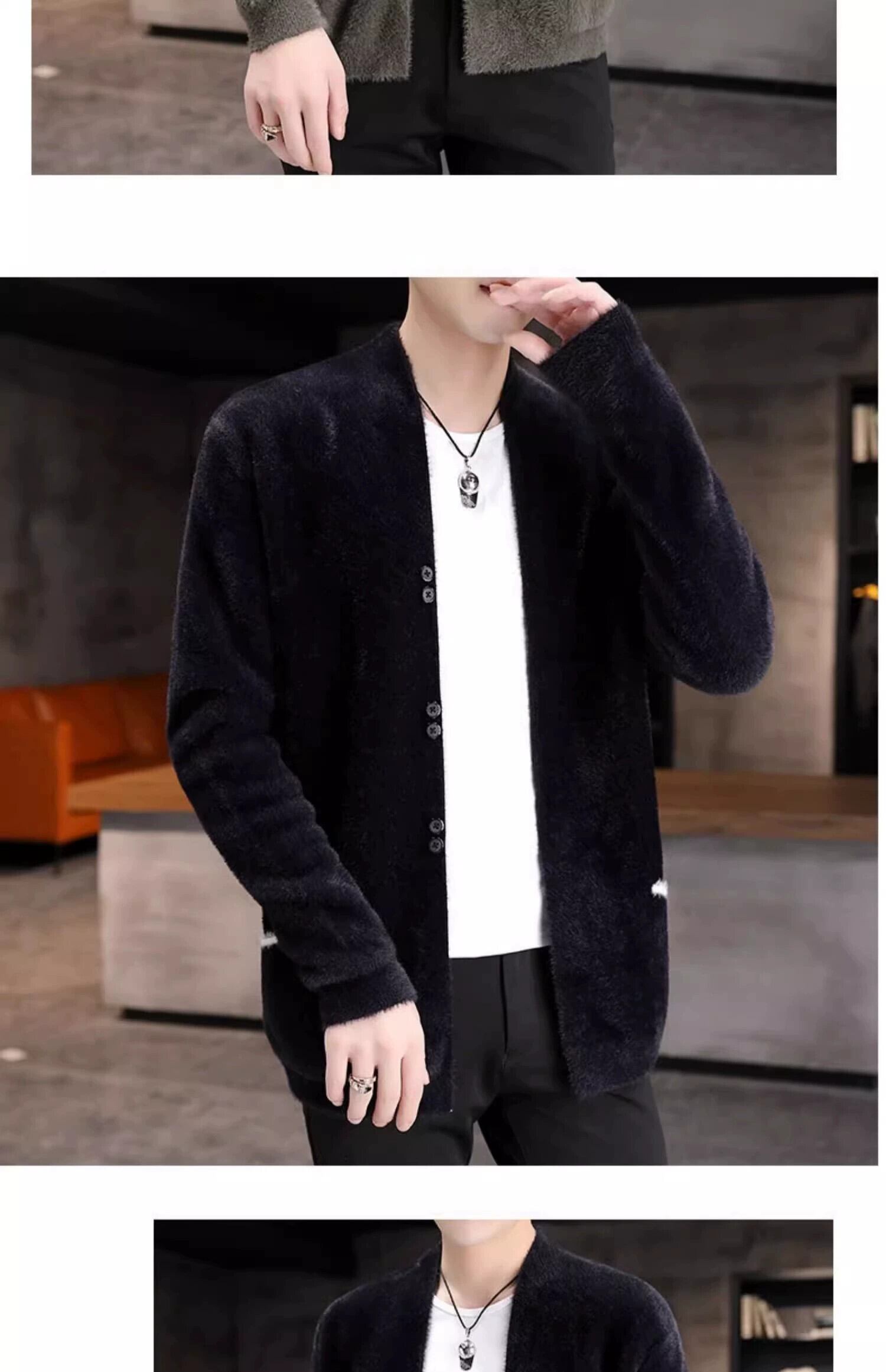 ミンクウール服メンズ、厚いボタンカシミアセーター、カーディガンジャケット、秋と冬のトレンディな若者 オータム 秋物 ウィンター 冬物 undao75358315479