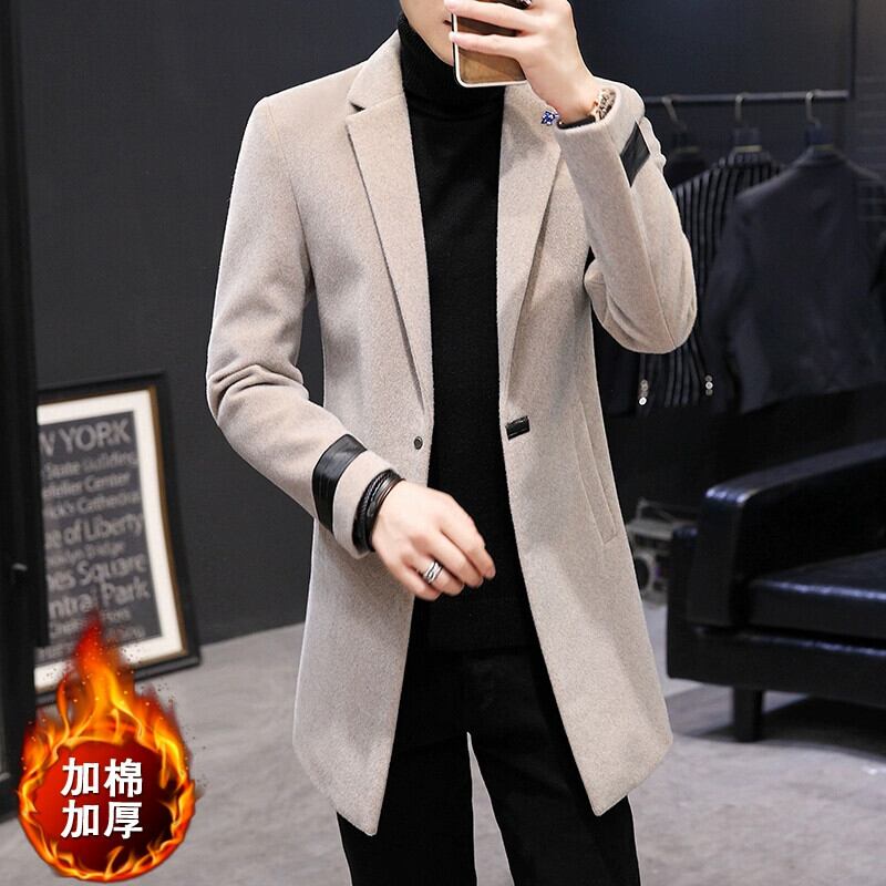 綿、厚くて暖かいメンズミンクフリースコートミッドレングスイミテーションファーウールコート冬のウインドブレーカートレンド コットン ウィンター 冬物 undao40183195109