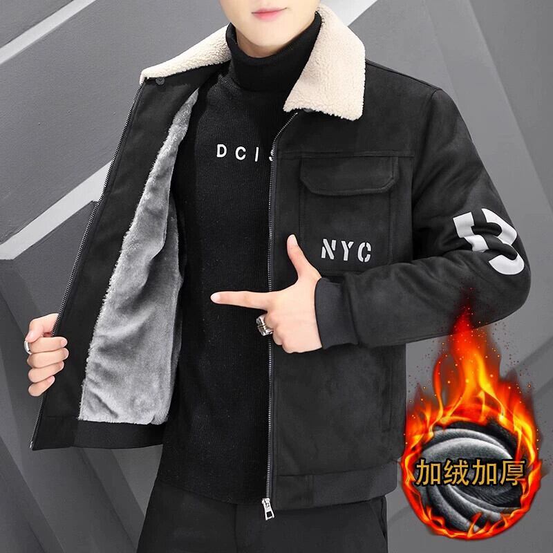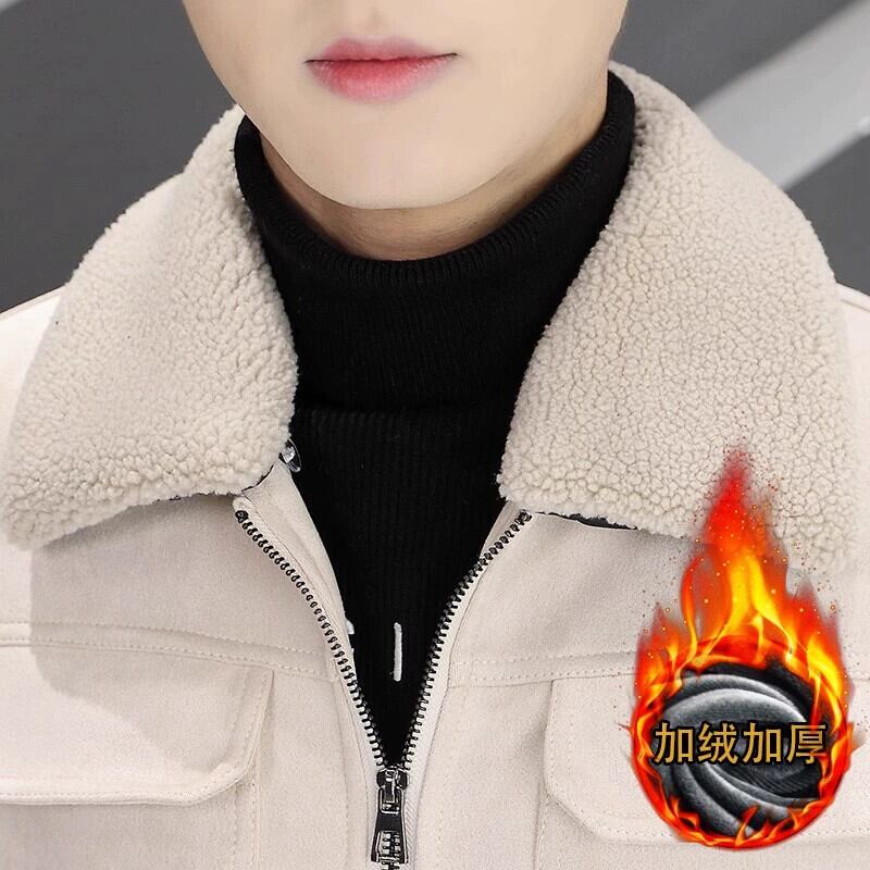 秋冬鹿革ベルベットジャケットメンズ 2023 新しいスタイルのトレンディな作業服プラスベルベット肥厚ジャケットメンズトップス オータム 秋物 ウィンター 冬物 undao51683212001