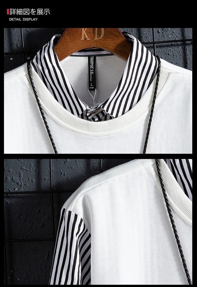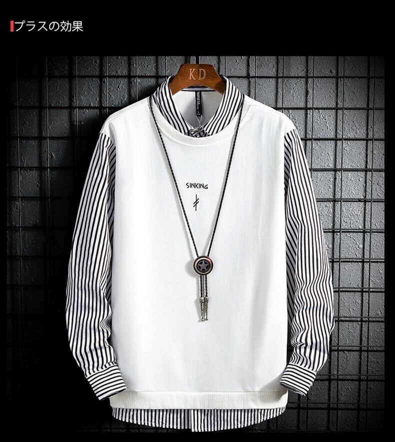 偽ツーピース長袖 Tシャツメンズ秋シャツ襟底シャツ 2023 新しいトップス春と秋の服 ロング スプリング 春物 オータム 秋物 undao68644147666