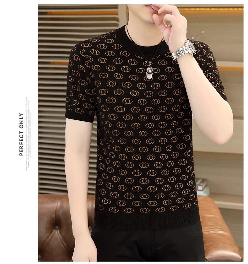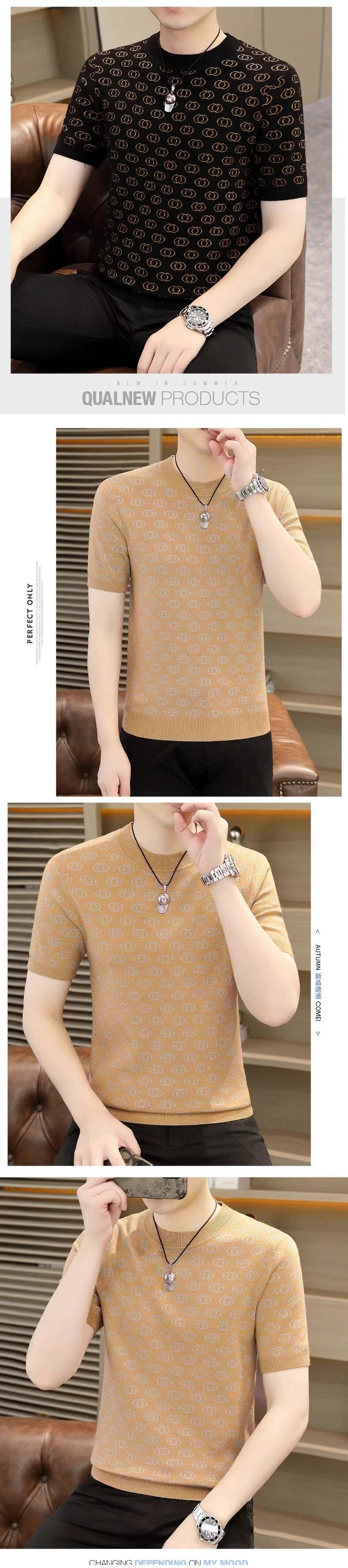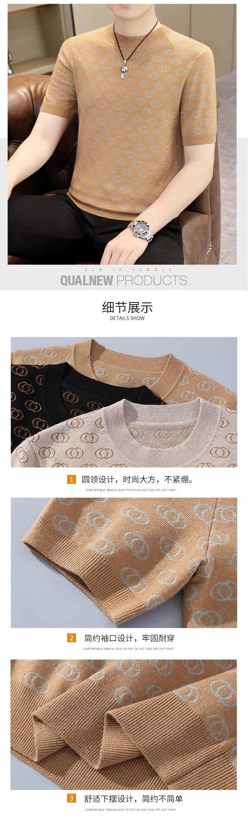 ヨーロッパステーションセーター半袖メンズ 2023 秋の新シンプルなスリムフィットジャカードインナーセーター半袖 Tシャツメンズ オータム 秋物 ヨーロピアン undao44336951982