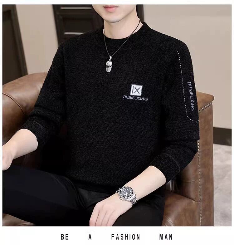 - オールインワンベルベットメンズセーター、冬のベルベット厚みのあるラウンドネックセーター、秋冬の暖かいベースセーター、セーター オータム 秋物 ウィンター 冬物 Oネック undao30623984020