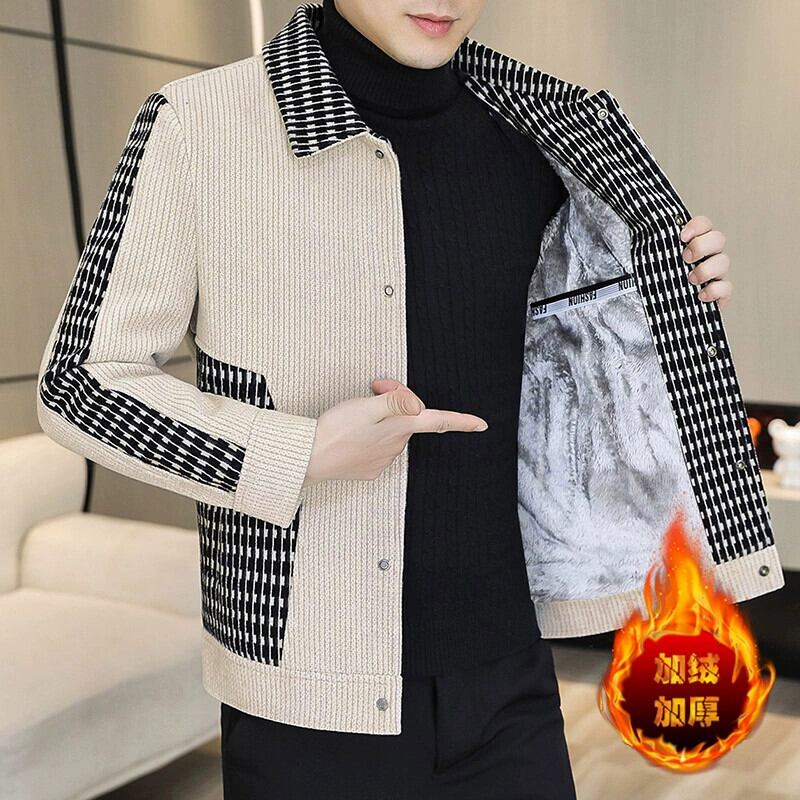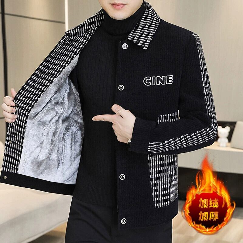 冬のメンズ模造毛皮コートミンクベルベット裏地ウールコートスリムユースラペル綿衣類ジャケットトレンディな コットン ウィンター 冬物 undao74912810139