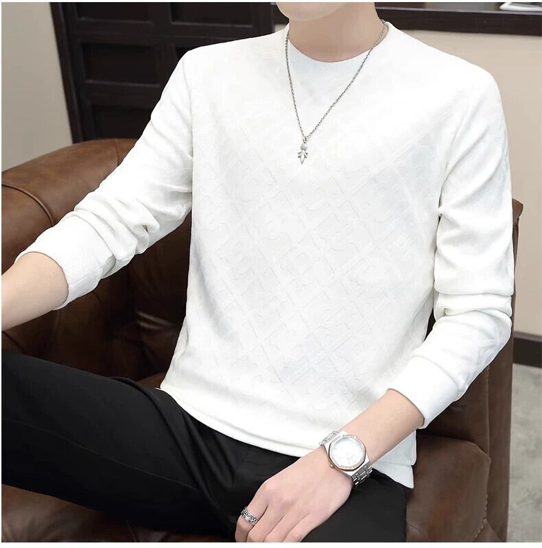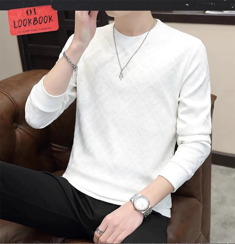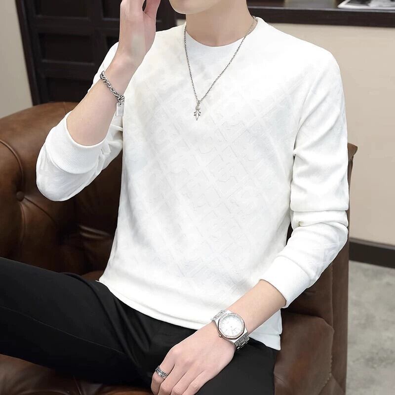 秋のジャカード無地スウェットシャツメンズ長袖ラウンドネックダークパターン Tシャツボトリングシャツカジュアルファッション多用途トレンディな紳士服 ロング オータム 秋物 Oネック ソリッドカラー undao8965854765
