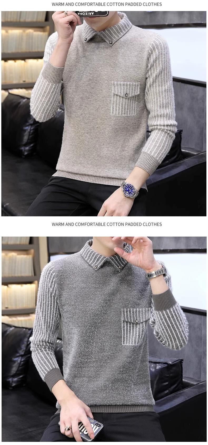 フリースフェイクツーピースセーターメンズシャツ襟肥厚模造ミンクフリースセーターメンズトレンディな秋と冬のベスト オータム 秋物 ウィンター 冬物 undao5409407724