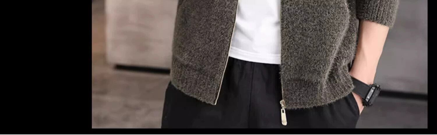 ジャケットメンズ模造ミンクベルベットトレンディなスタンドカラージャケットイントレンディなブランドハンサムな秋と冬のニットカーディガントップ服 オータム 秋物 ウィンター 冬物 undao14082406421