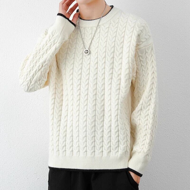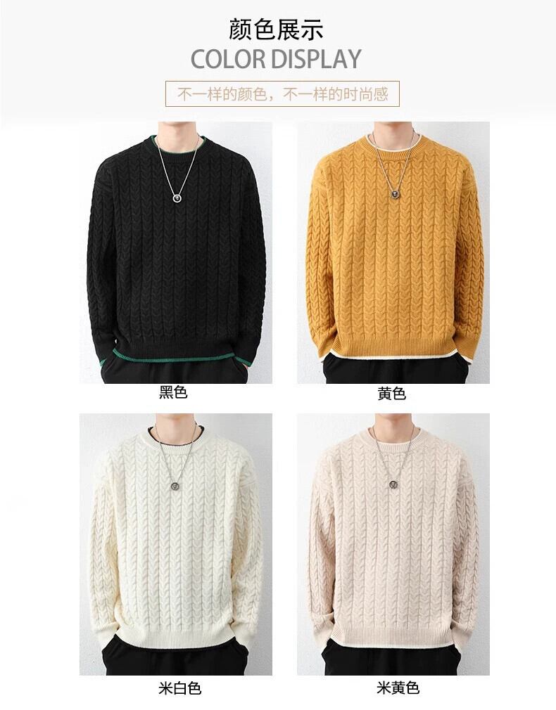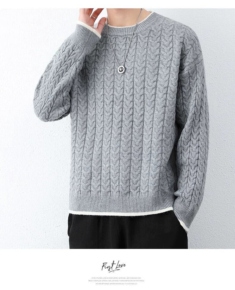 秋冬メンズラウンドネックツイストニットセーターティーンエイジャーと学生、フリース厚く暖かいセーター オータム 秋物 ウィンター 冬物 Oネック undao45071791156