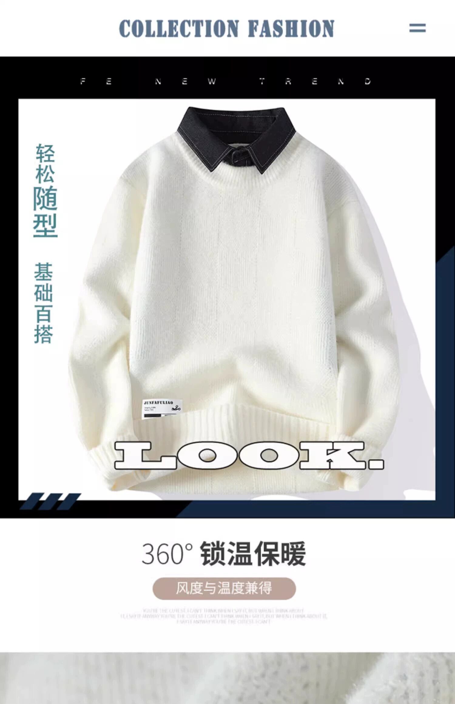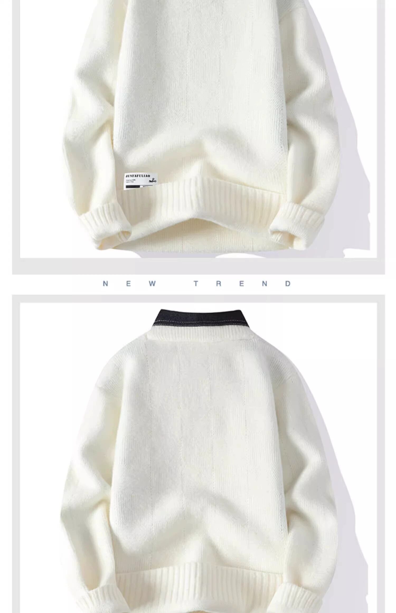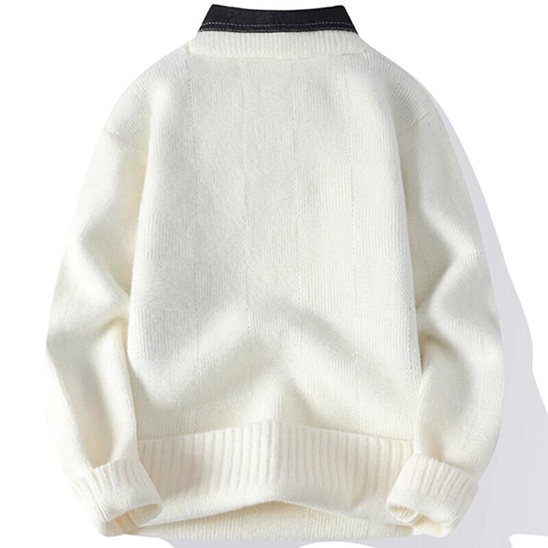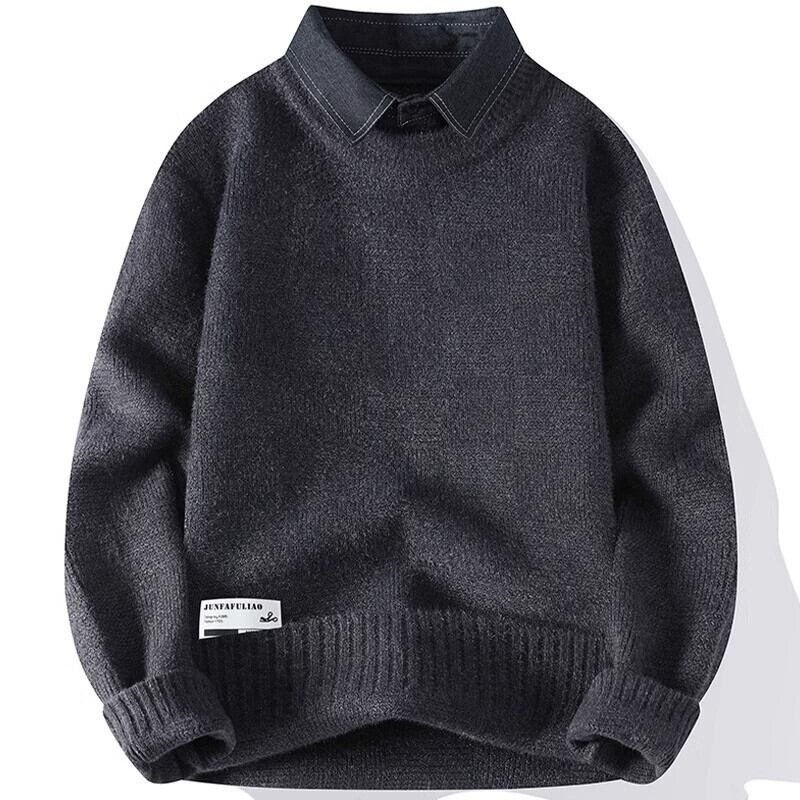 フェイクツーピースセーターメンズ秋と冬の厚く暖かいシャツ襟セーターメンズトレンディなブランドプルオーバーボトミングセーター オータム 秋物 ウィンター 冬物 undao78206520834