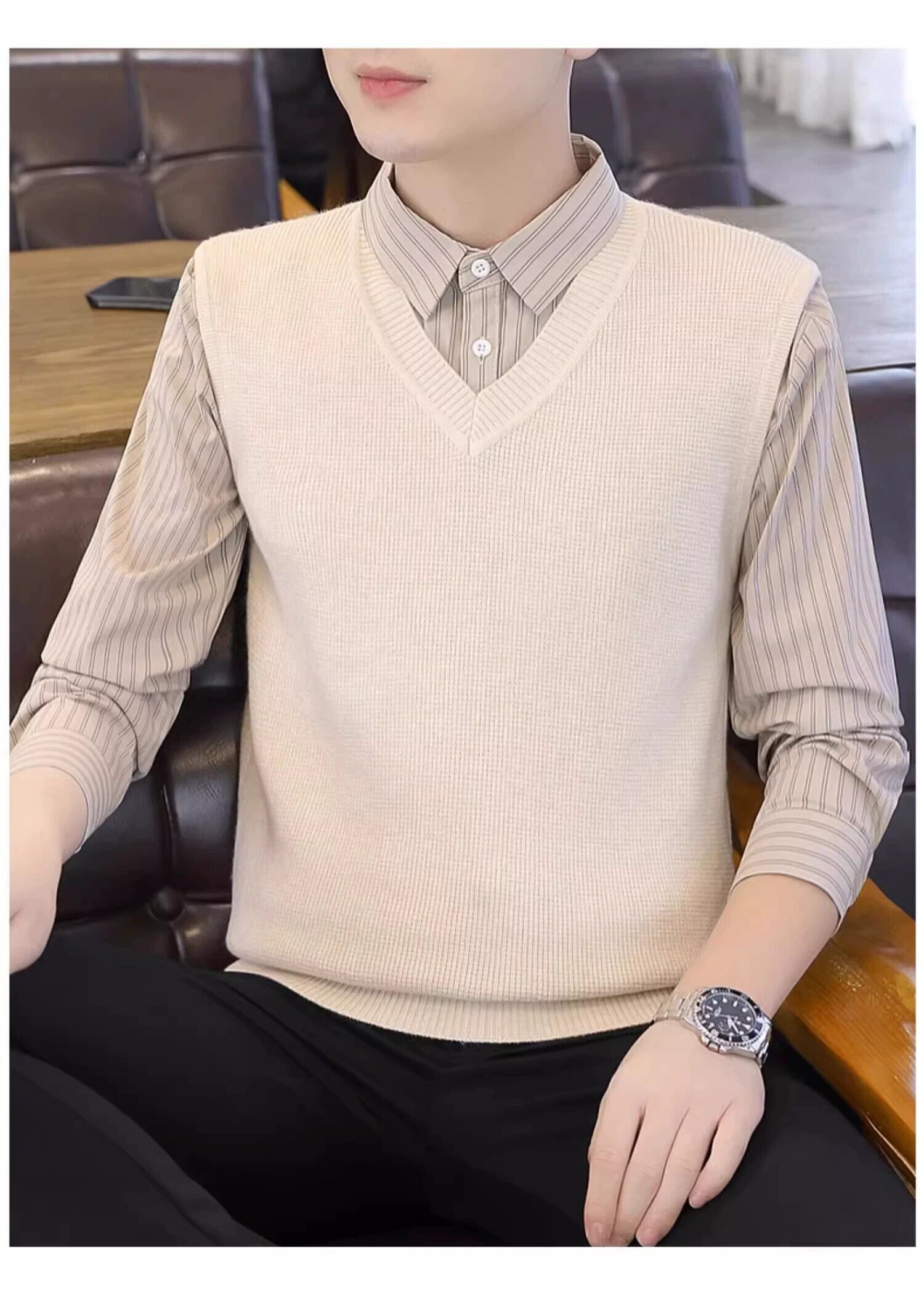 メンズ秋冬セータートップス 2023 新しいハイエンド多用途シャツスタイルフェイクツーピースセーター秋のトレンド オータム 秋物 ウィンター 冬物 undao91819876958