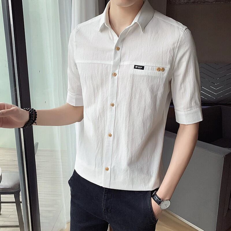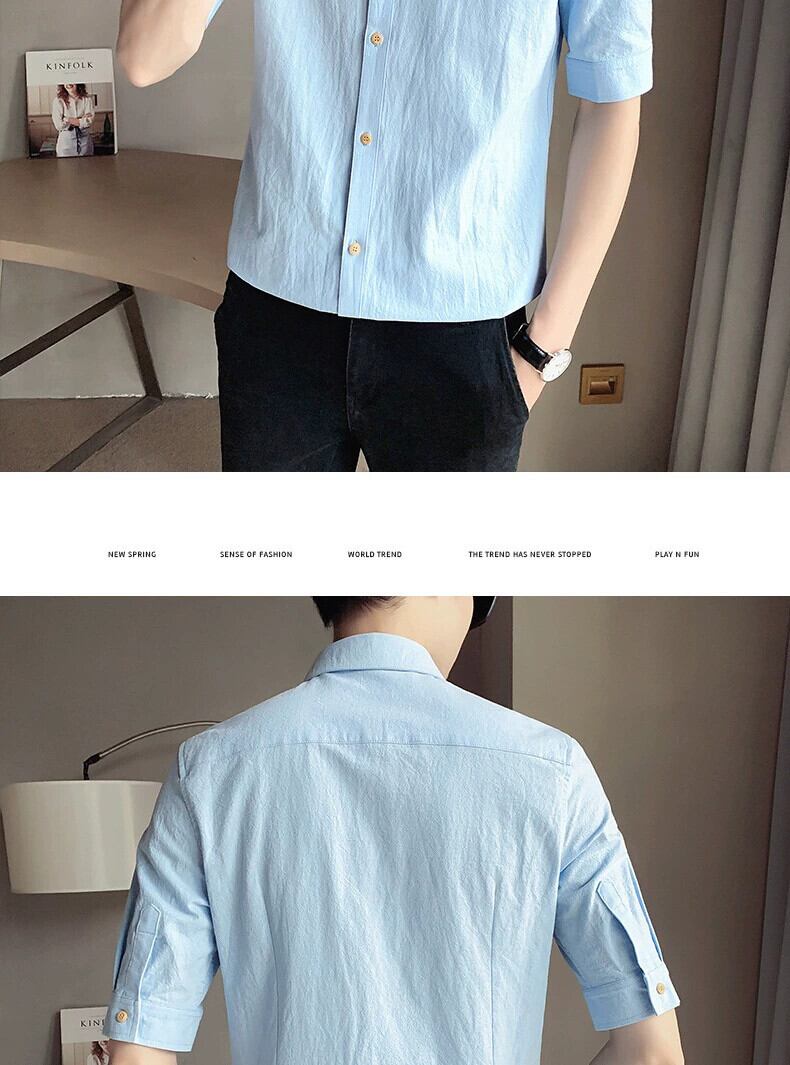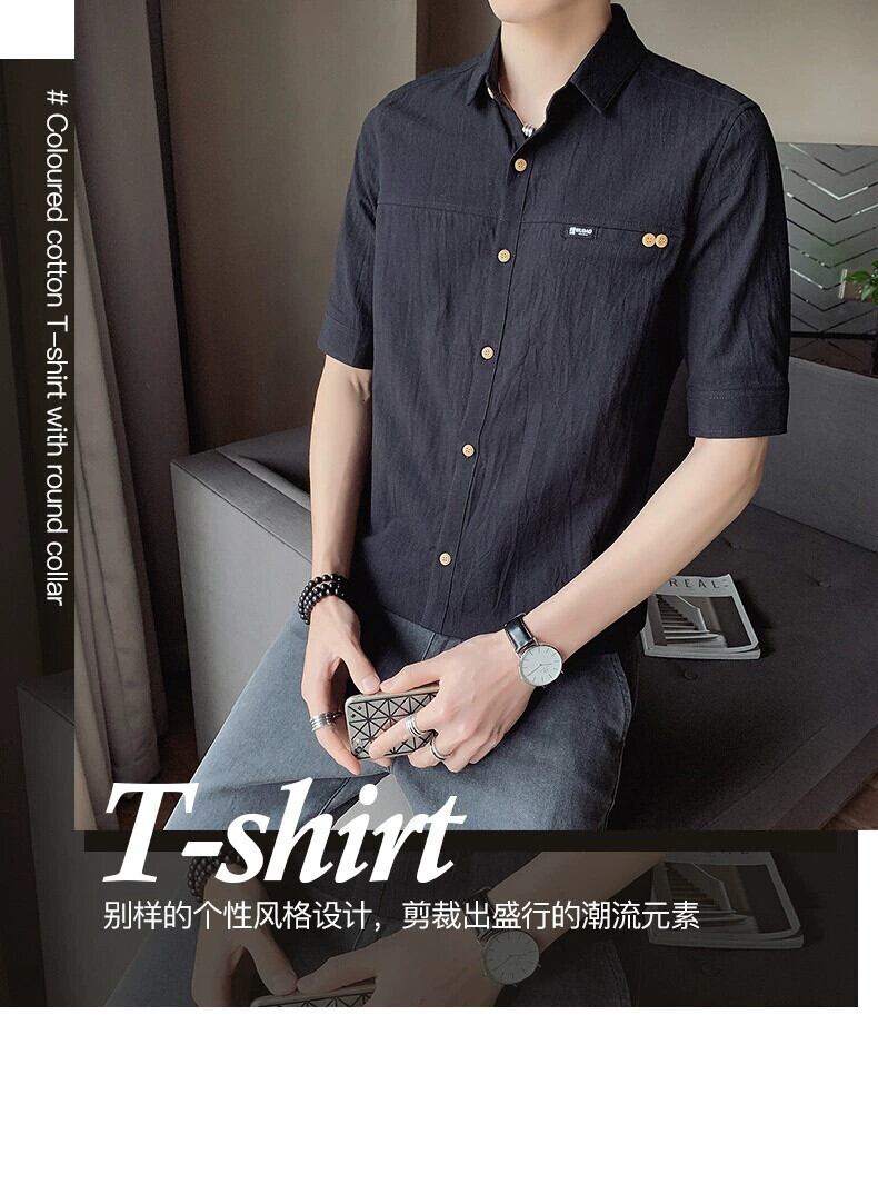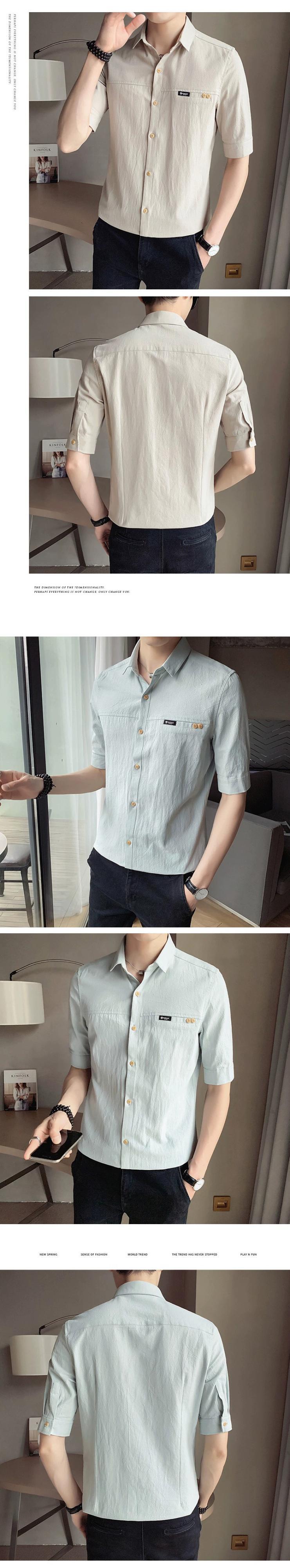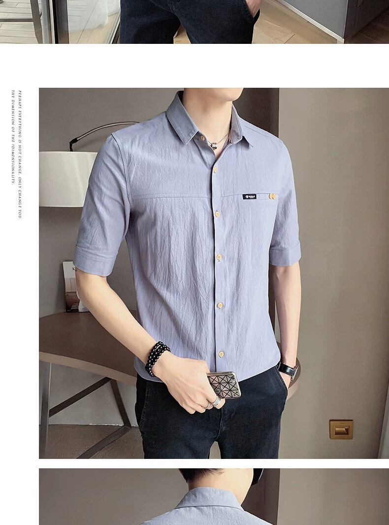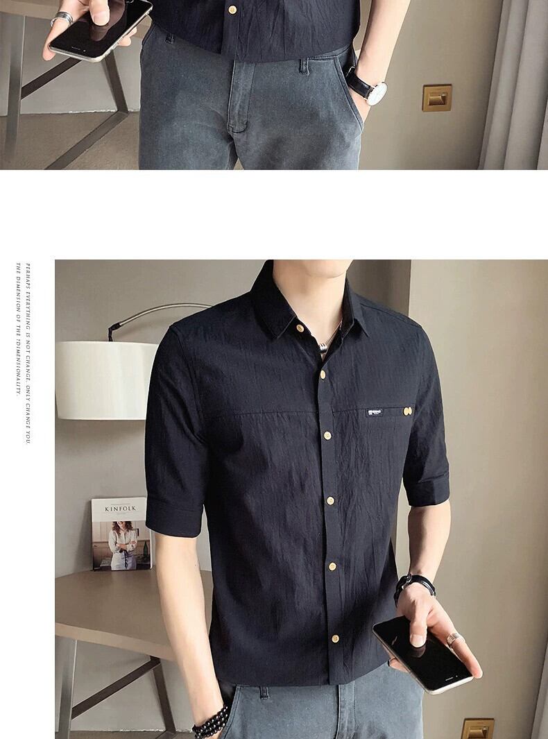 純綿半袖シャツメンズ夏薄手七分袖シャツスリムスタイルトレンディな七分袖リネントップ コットン サマー 夏物 undao22879919954