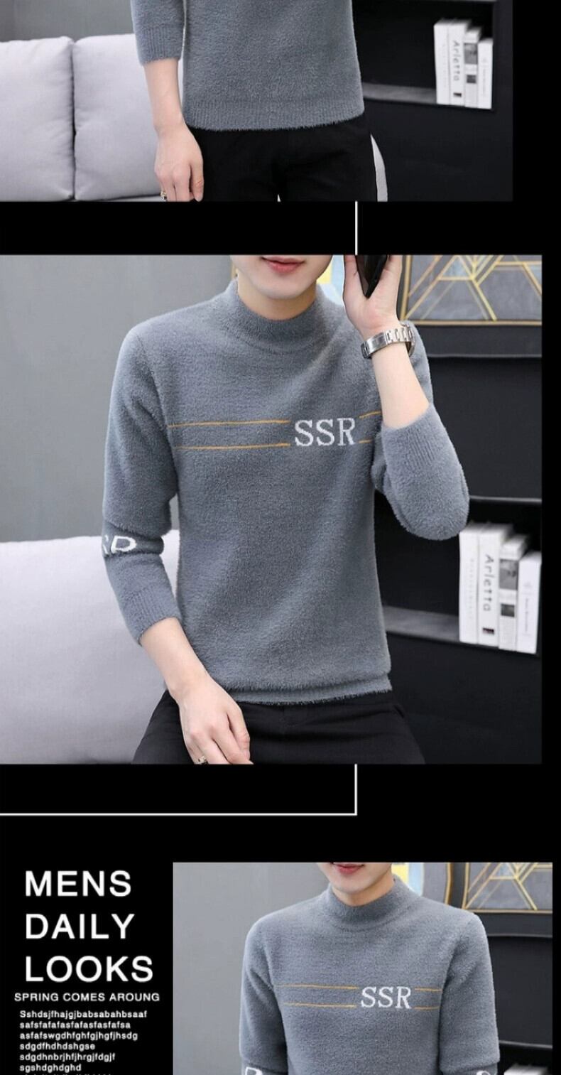 ミンクベルベットウールセーター 2023 新しいメンズハーフタートルネック暖かいセーター冬プラスベルベット肥厚ボトムシャツトレンディ ウィンター 冬物 undao72246527563