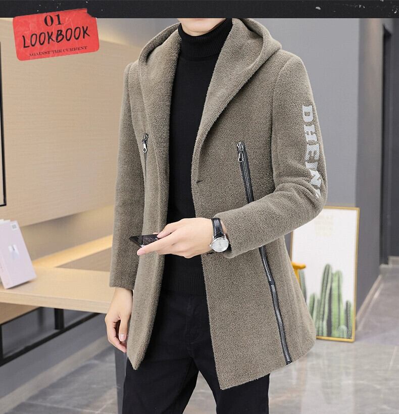 -エンドファーコートメンズ、厚いファーワンピースゴールドミンクベルベットフード付きコート、ユースミディアムおよびロングミンクファーコットンコート undao7856817356