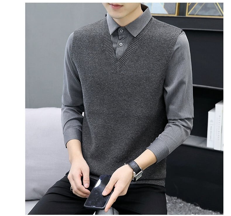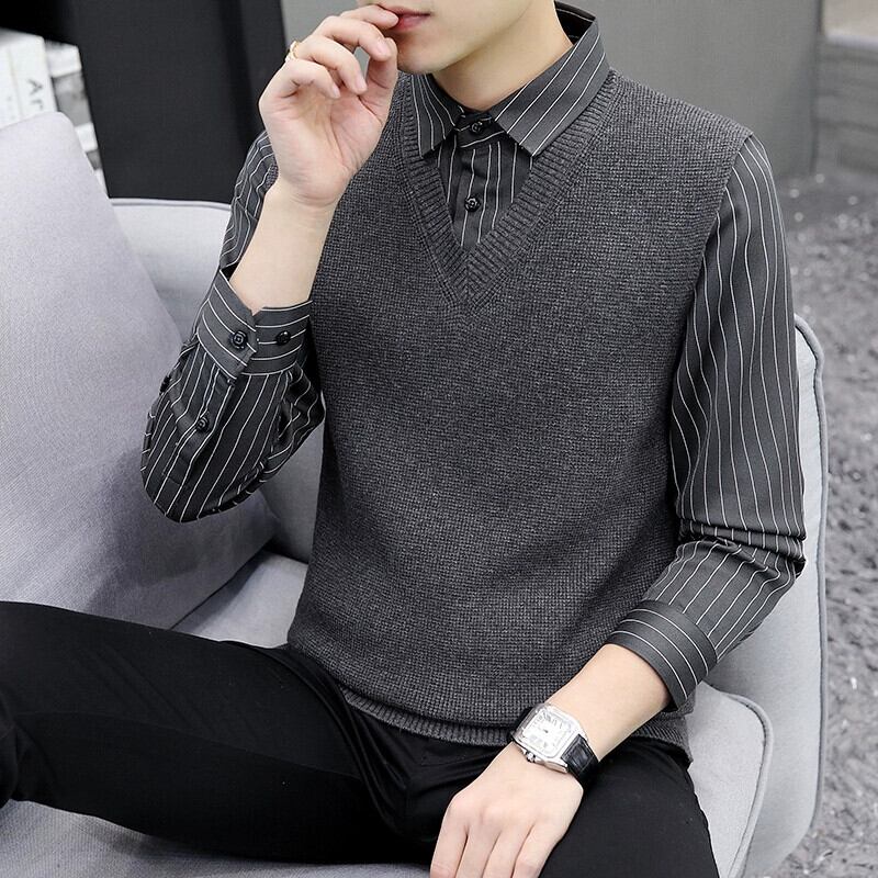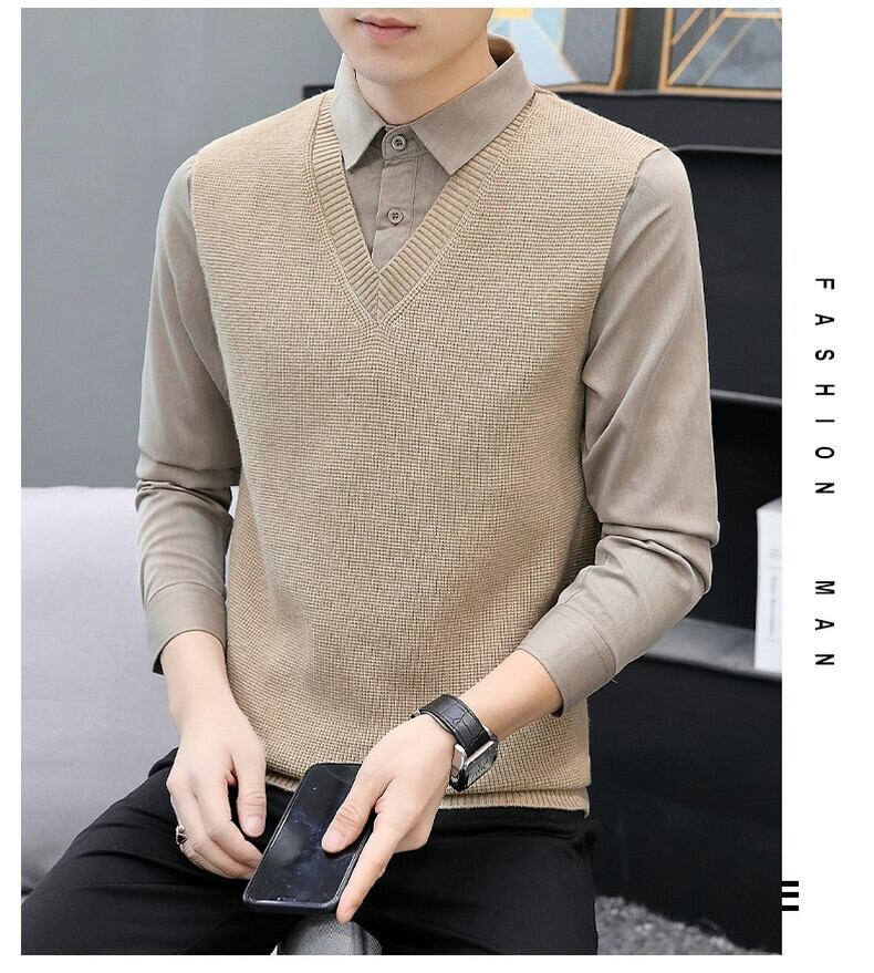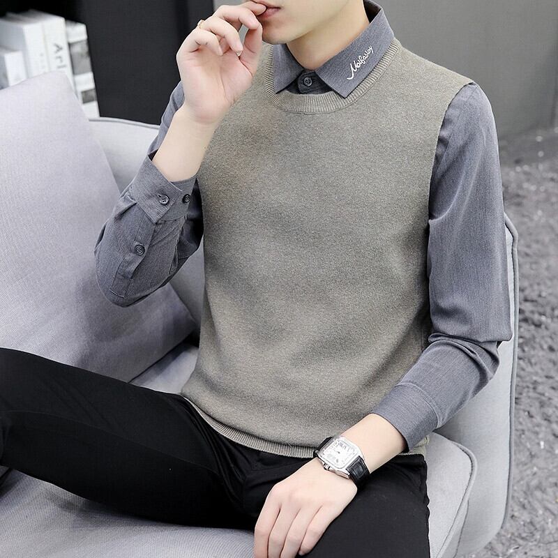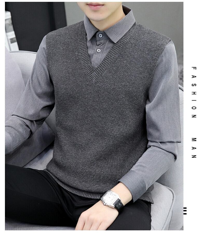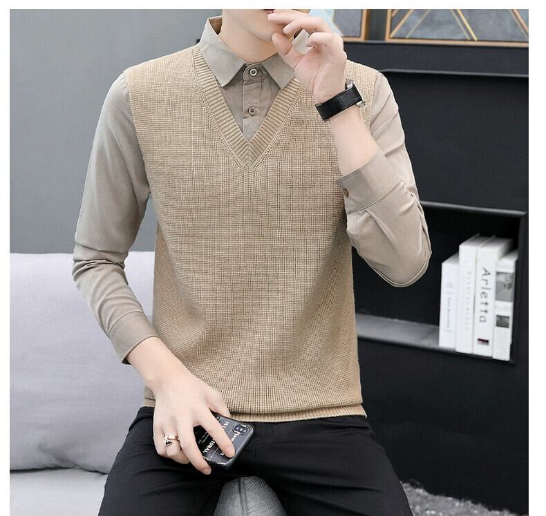 秋と冬のホリデーツーピースセーター男性バージョン 2023 新しいシャツの襟ボトミングセーター襟ルーズセーター オータム 秋物 ウィンター 冬物 undao30339523369