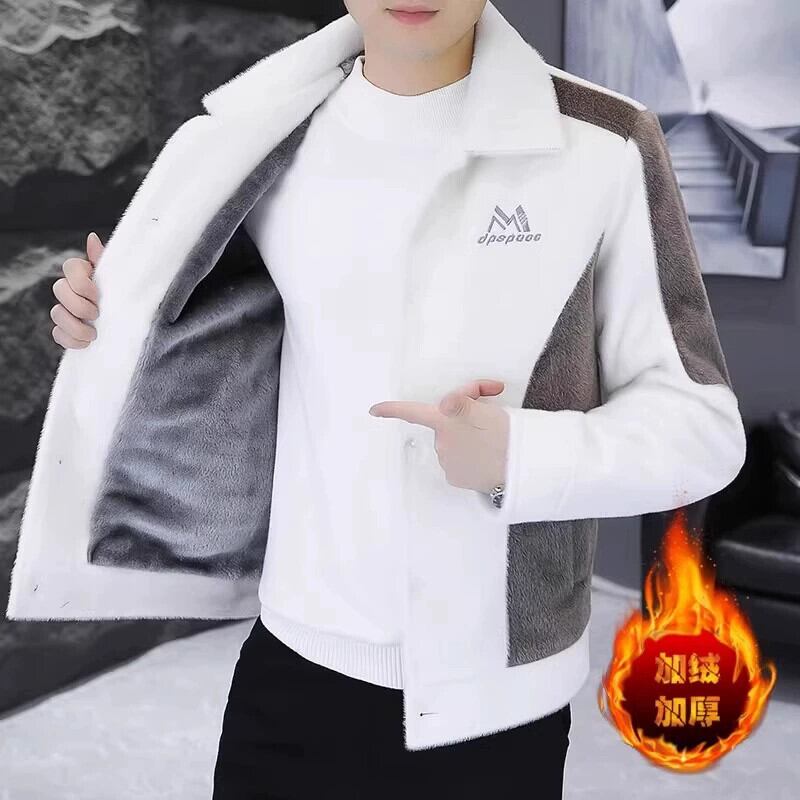冬のメンズミンクの毛皮のコートラペルプラスベルベット厚みのあるトレンディなショートウインドブレーカーメンズユース模造毛皮 ウィンター 冬物 undao4541921914