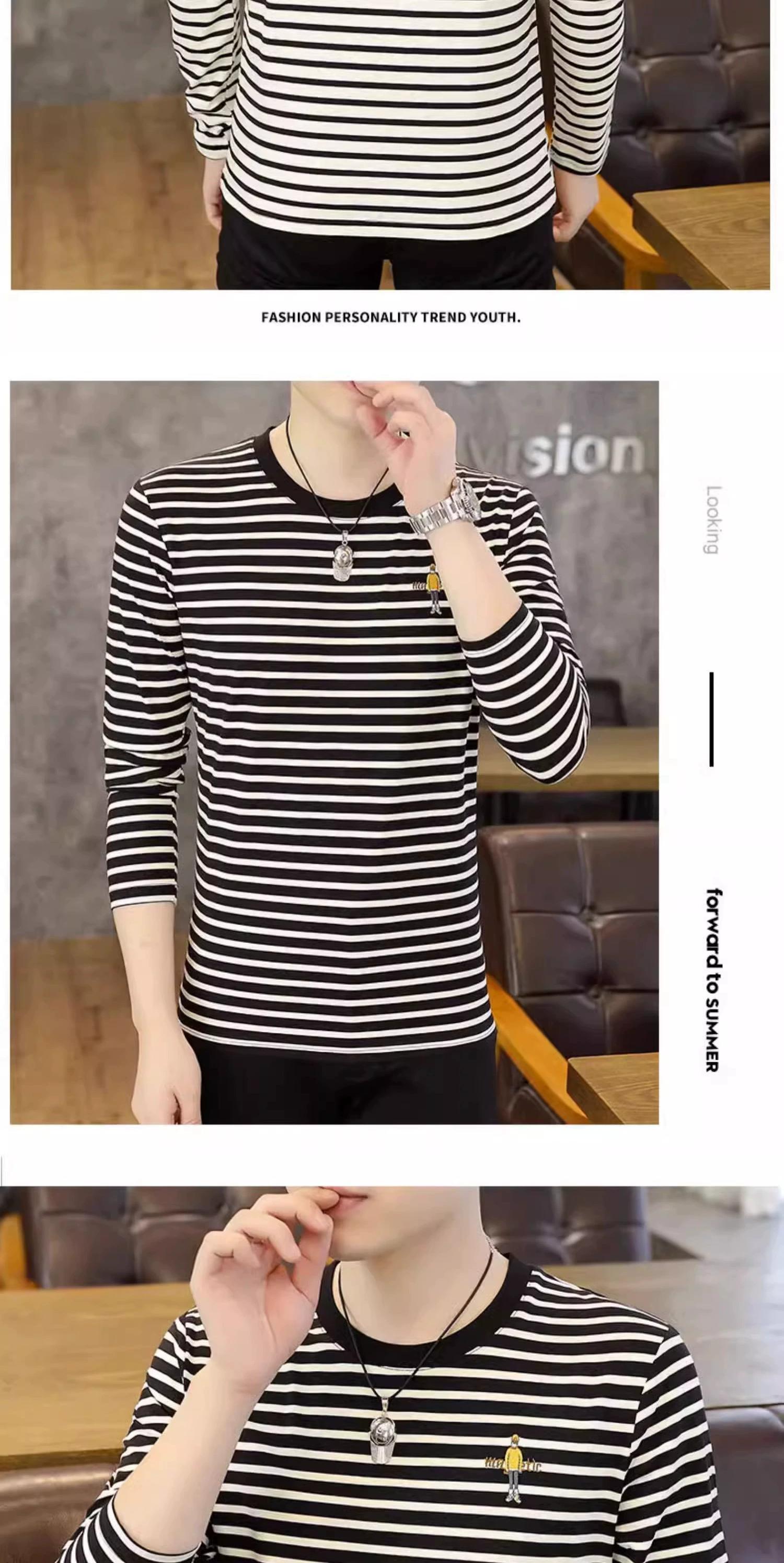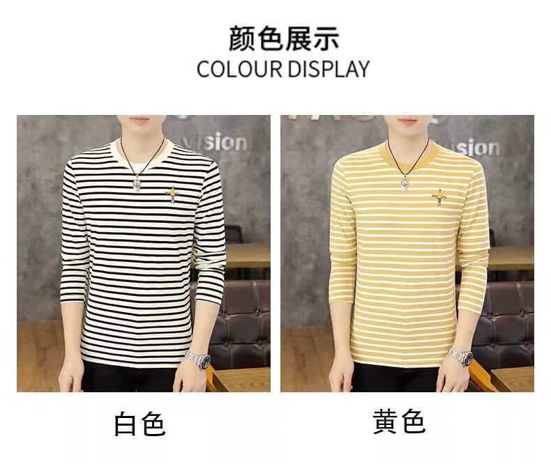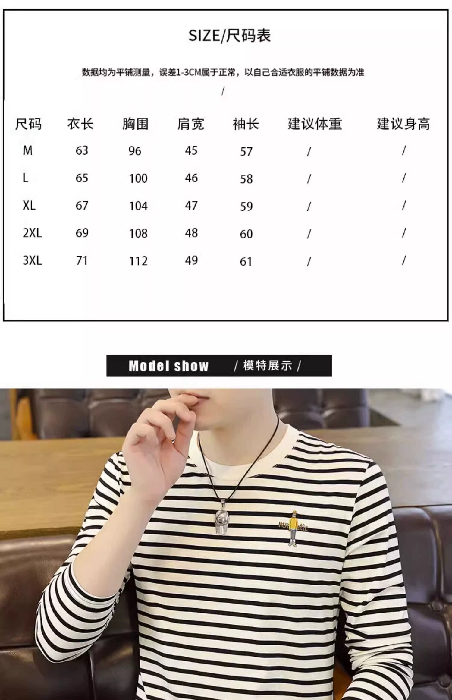 ピュアコットン長袖 Tシャツメンズ 2023 春と秋のトレンディなストライプボトムシャツ秋服トレンディなブランド秋の装飾ボディ服 ロング スプリング 春物 オータム 秋物 undao60973537868
