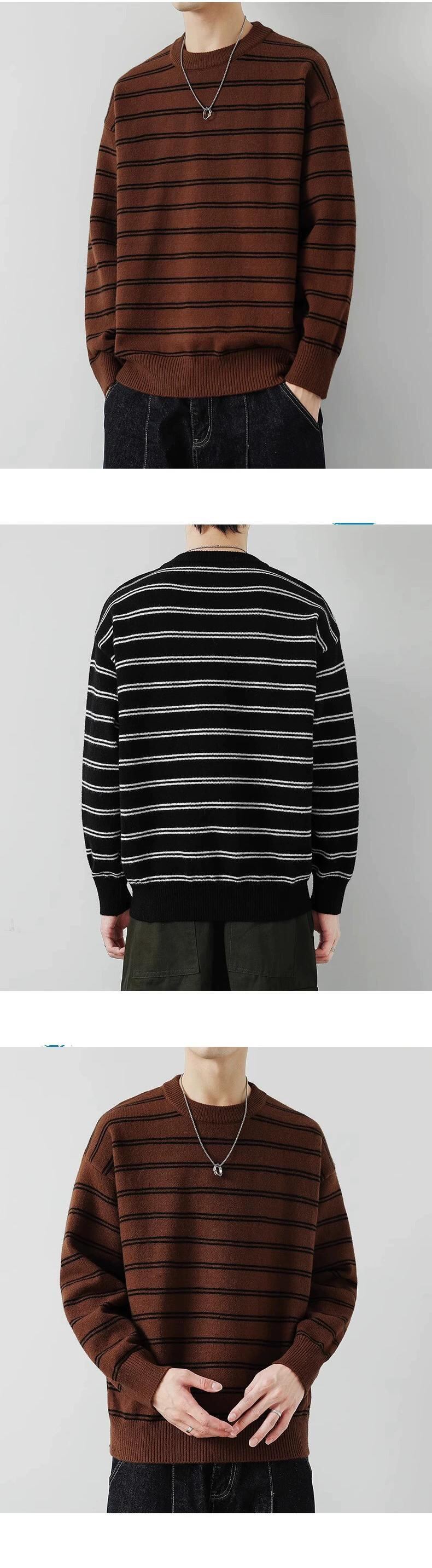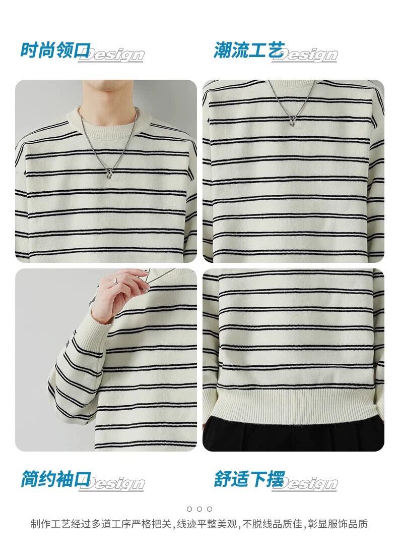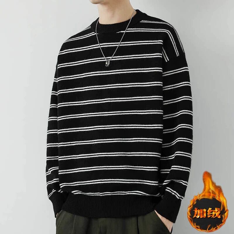 ラウンドネックセーターメンズストライプルーズ 2023 新しい秋と冬のセーターイントレンドプラスベルベット底セーター オータム 秋物 ウィンター 冬物 Oネック undao70008291255