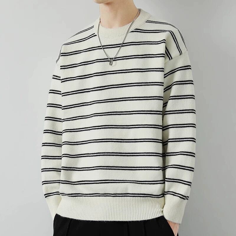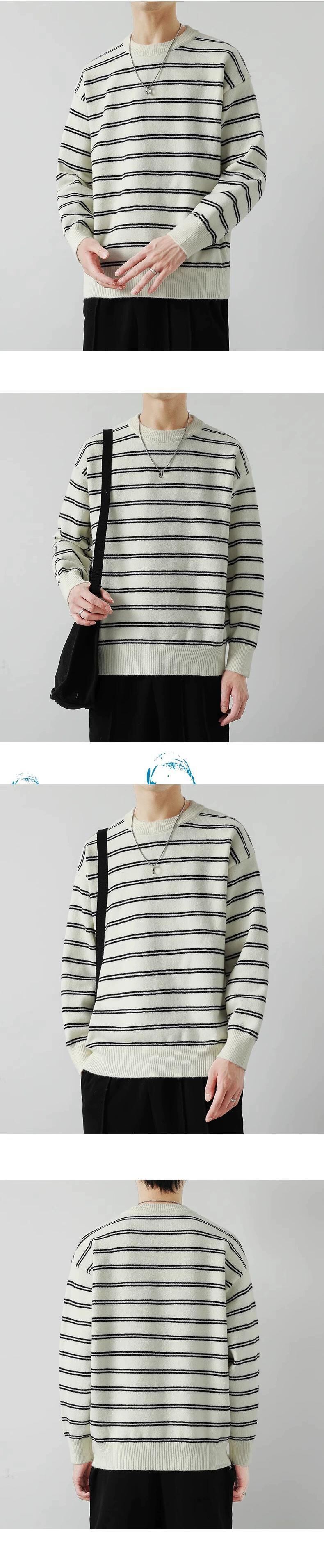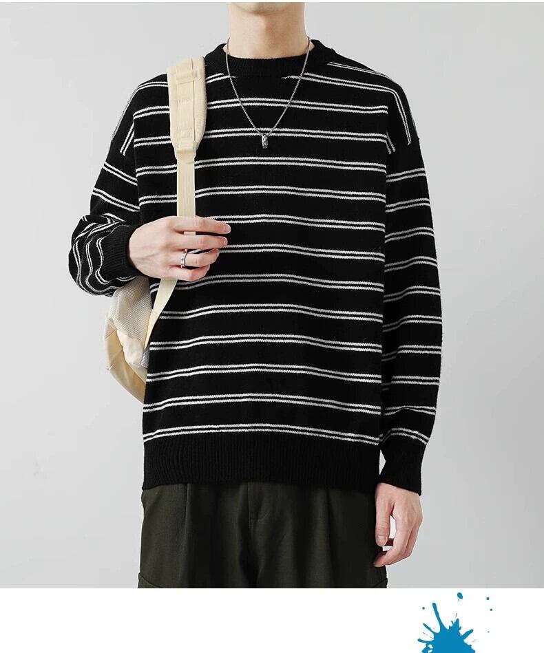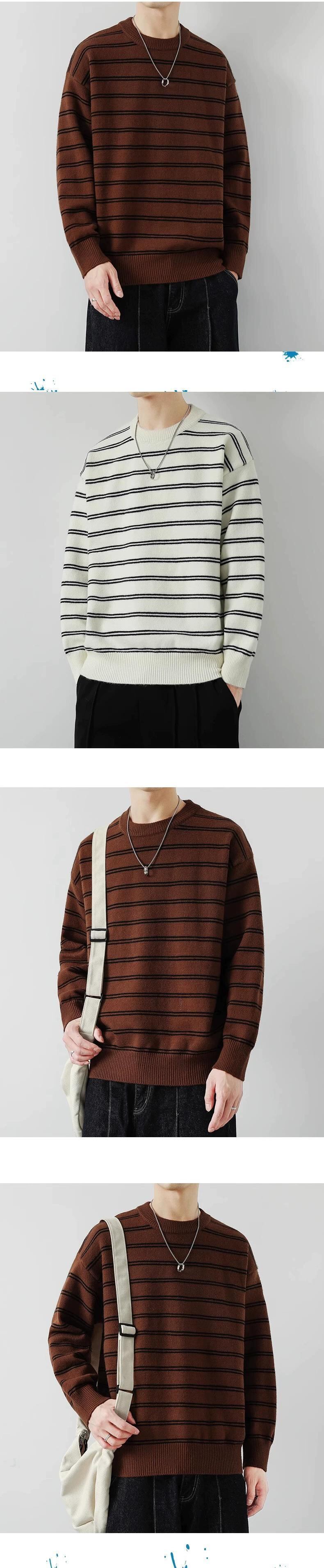ラウンドネックセーターメンズストライプルーズ 2023 新しい秋と冬のセーターイントレンドプラスベルベット底セーター オータム 秋物 ウィンター 冬物 Oネック undao70008291255