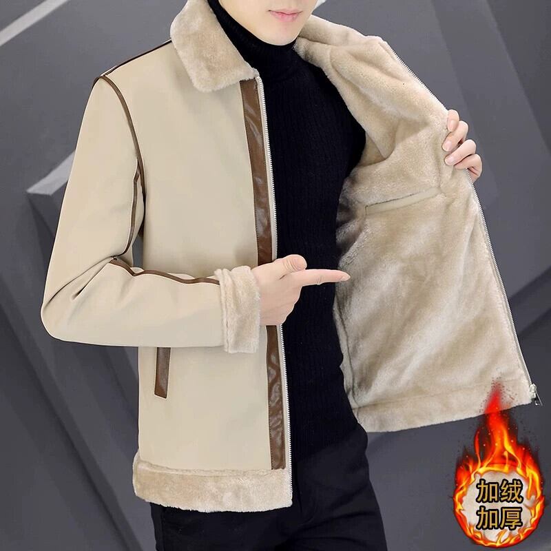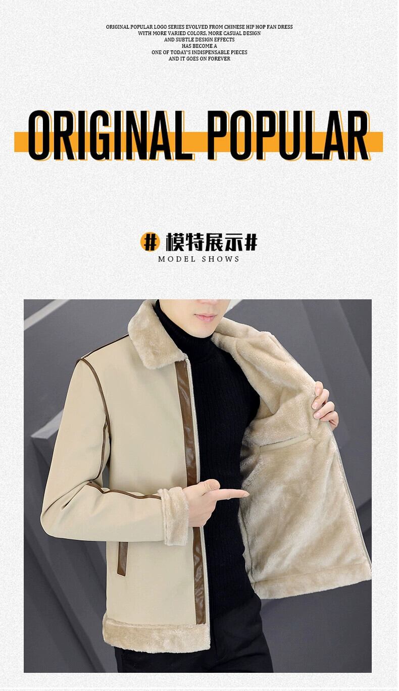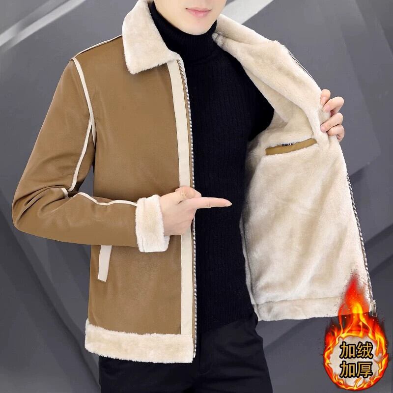 暖かい模造毛皮のジャケットの男性の冬の新 2023 ラペル鹿革ベルベットジャケットユースプラスベルベット肥厚綿コート コットン ウィンター 冬物 undao74582013230