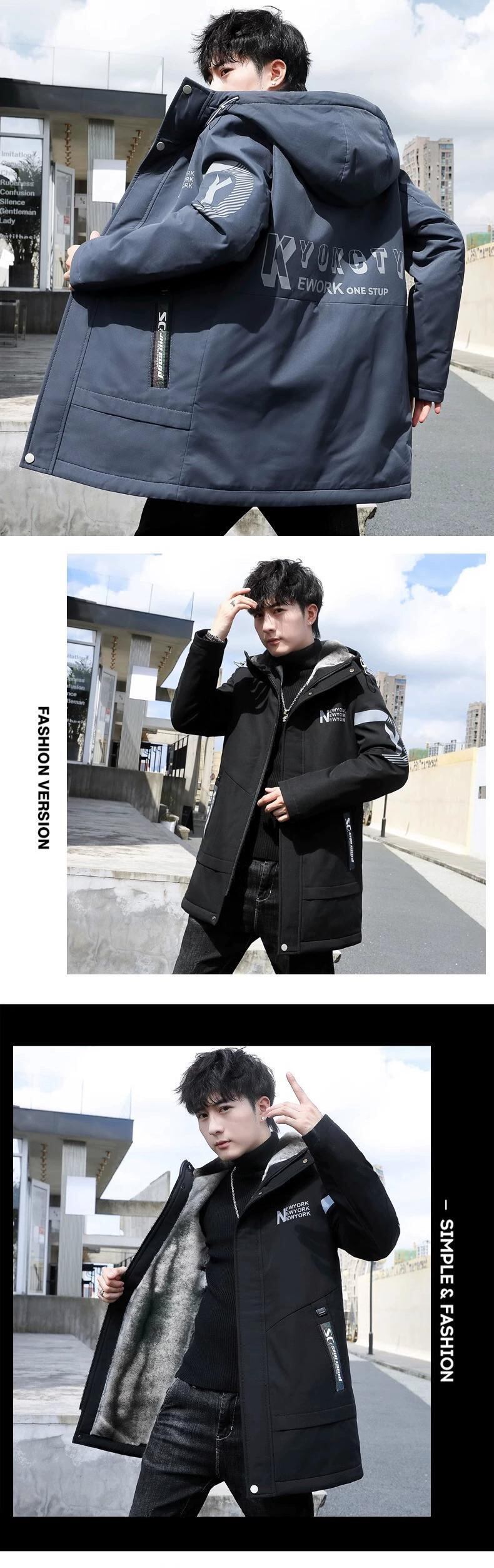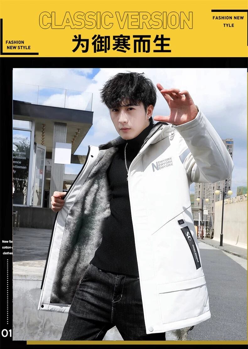 ウィンターパーカーメンズジャケットプラスベルベット肥厚ジャケットメンズ冬のコットンコートミッドレングスウインドブレーカー暖かいジャケット 冬物 undao89833028367