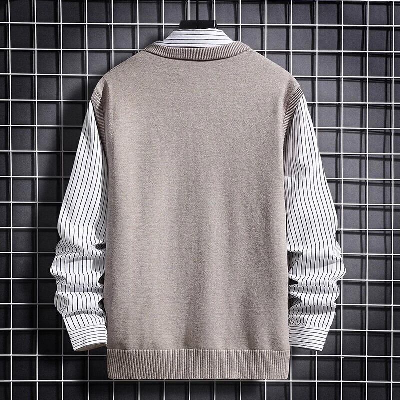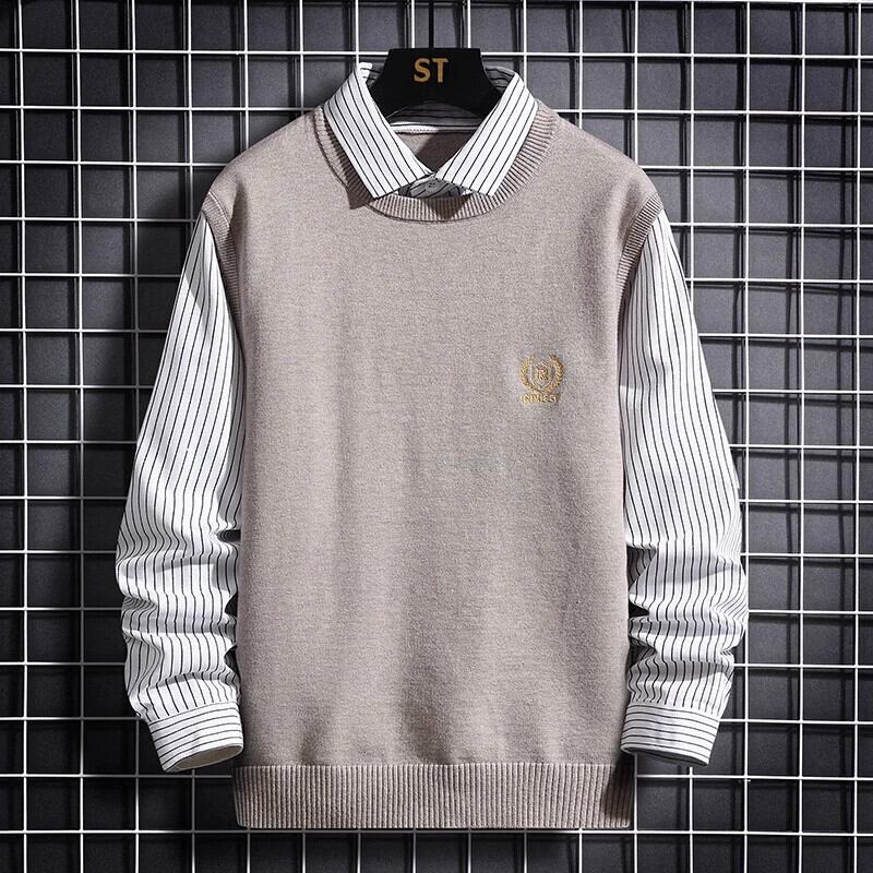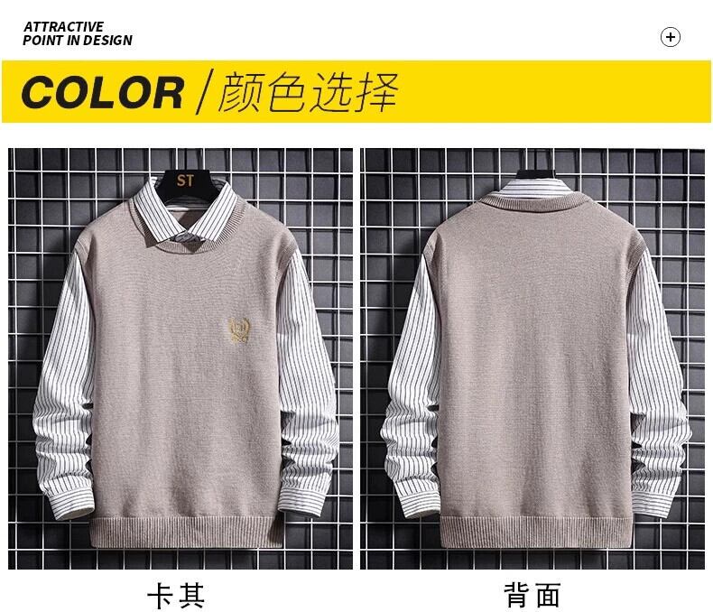 秋と冬のホリデーツーピースセーターメンズ、厚いシャツカラーセーター、秋と冬のデイベスト、ベルベットボトムシャツメンズ オータム 秋物 ウィンター 冬物 undao10765637968