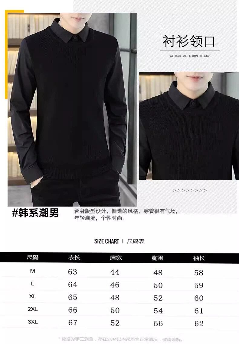 フェイクツーピースニットセーターメンズ、バージョン、スリムフィットソリッドカラーシャツカラー、メンズ長袖カラーアウターウェア、秋のトップトレンディ ロング オータム 秋物 undao40365034074