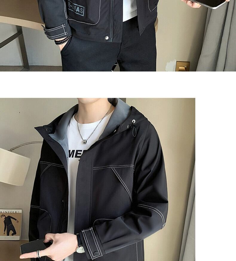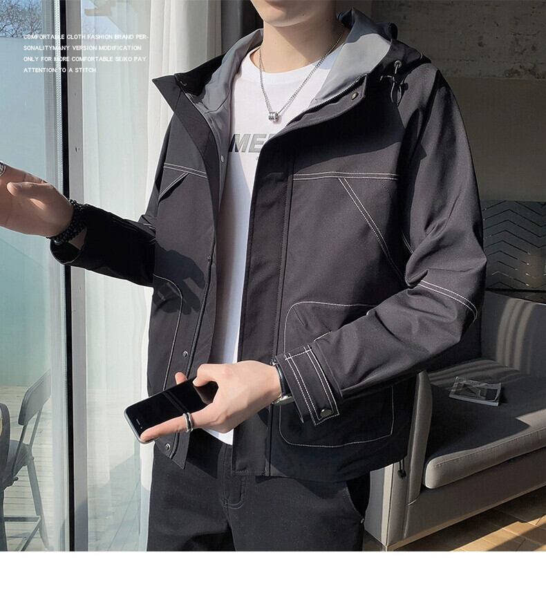 秋のワークジャケットメンズ春秋 2023 新しいトレンディなメンズジャケットカジュアル多用途ユースフード付き紳士服 スプリング 春物 オータム 秋物 undao59193749644