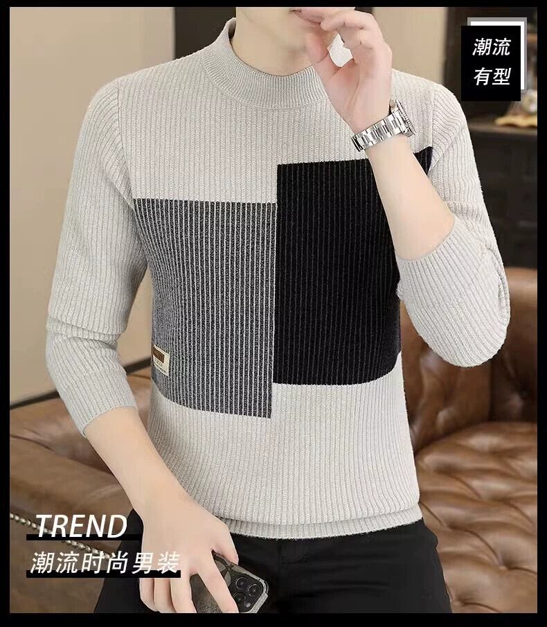 セーターメンズ秋冬 2023 新しい厚く暖かいニット底セーター冬服トレンディなハーフタートルネックトップ オータム 秋物 ウィンター 冬物 undao51154970602