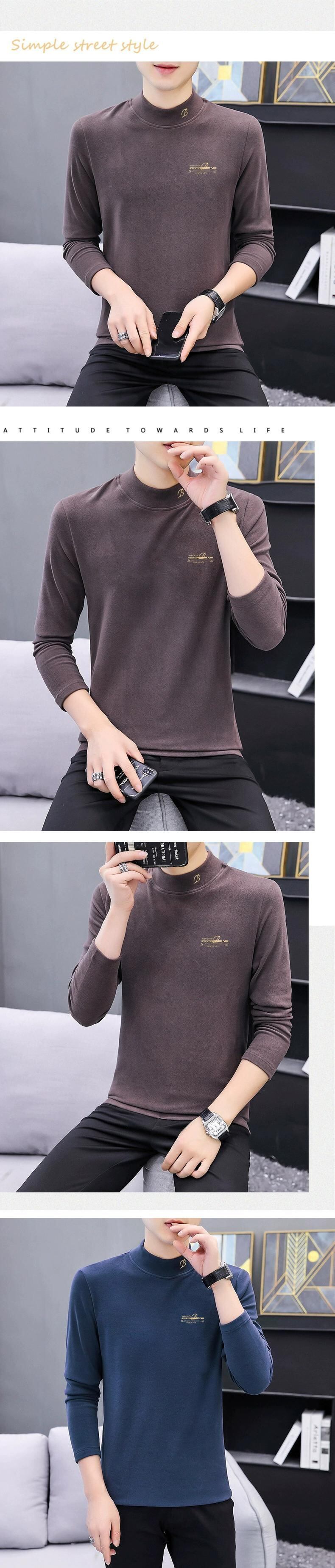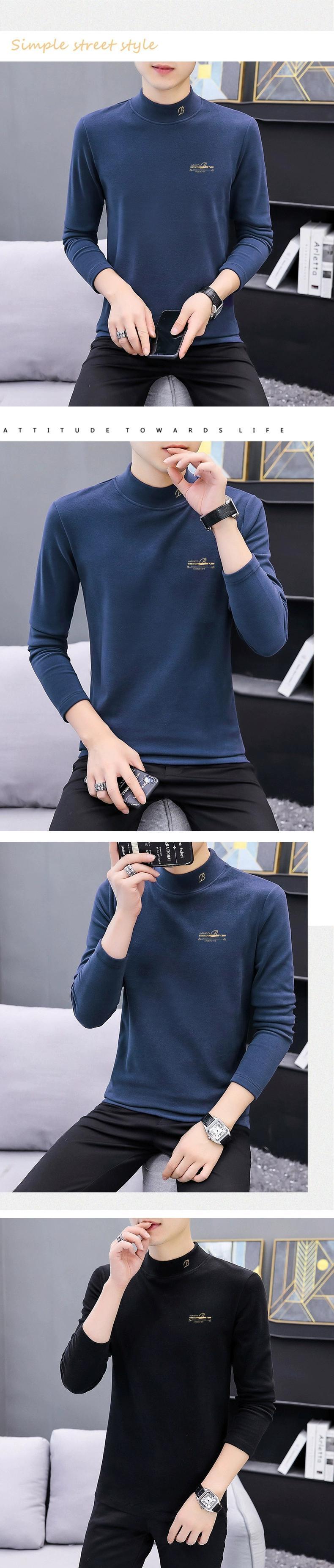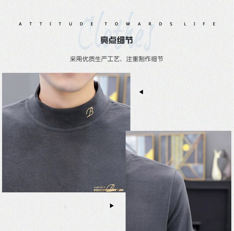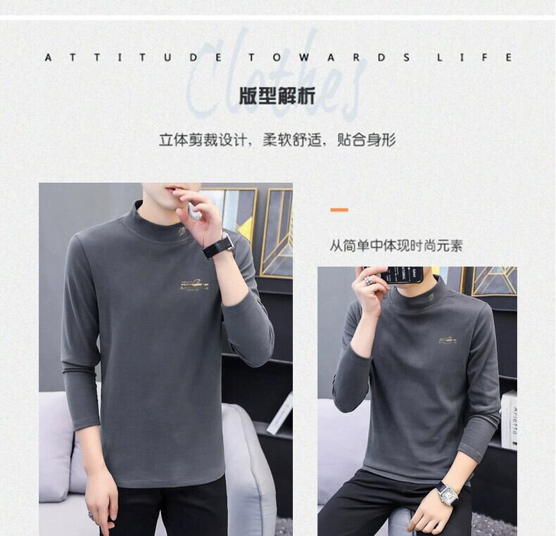 冬のハーフタートルネックボトリングシャツメンズ両面ドイツベルベットミッドカラー秋コートプラスベルベット厚みのあるメンズ秋冬長袖Tシャツ ロング オータム 秋物 ウィンター 冬物 undao73014787038