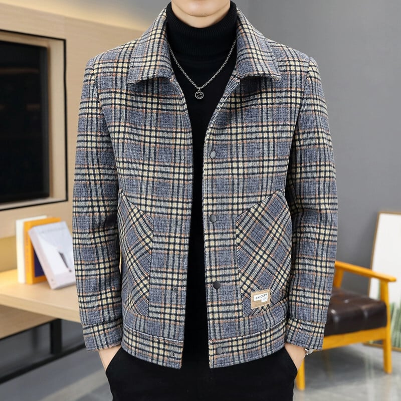 ジャケットメンズスリム秋と冬のトレンディなショートラペルチェック柄コート若者ハンサム肥厚ウールコート オータム 秋物 ウィンター 冬物 undao24375174730