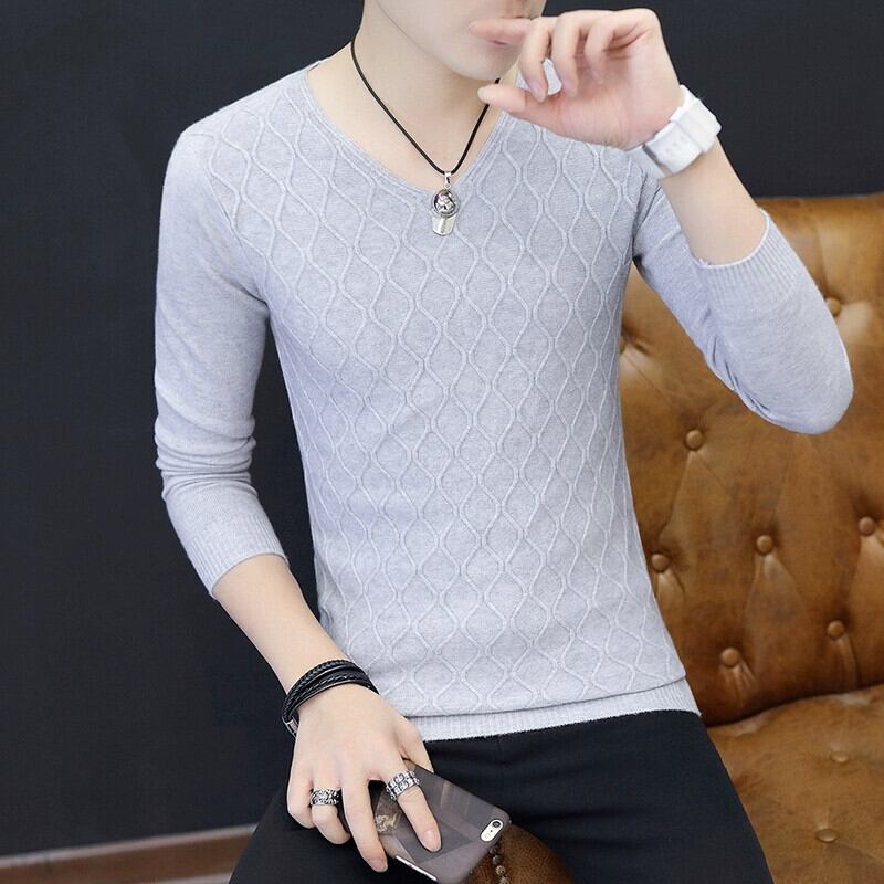 長袖Tシャツメンズ、スリムフィット春秋トップス、トレンディなTシャツ、Vネック、ベルベット、厚みのある2023年新作セーター ロング スプリング 春物 オータム 秋物 undao89453796879