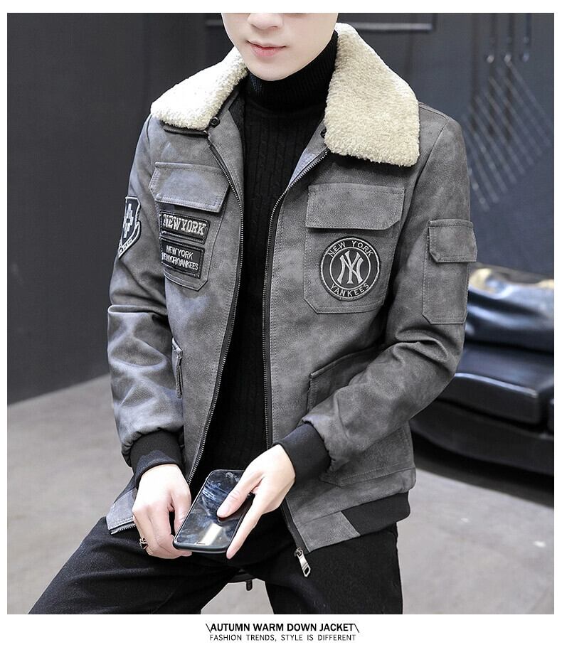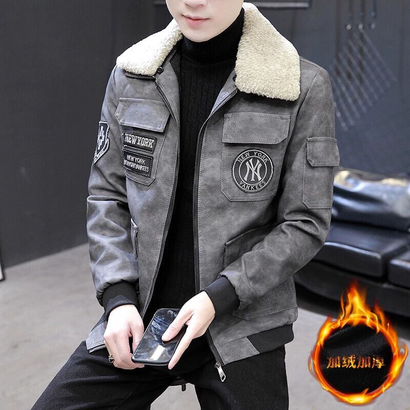 レザージャケットメンズ秋冬トレンドブランドハンサムラペルPUレザージャケットバージョントレンディなベルベット厚みのあるメンズトップ服 オータム 秋物 ウィンター 冬物 undao90563458726