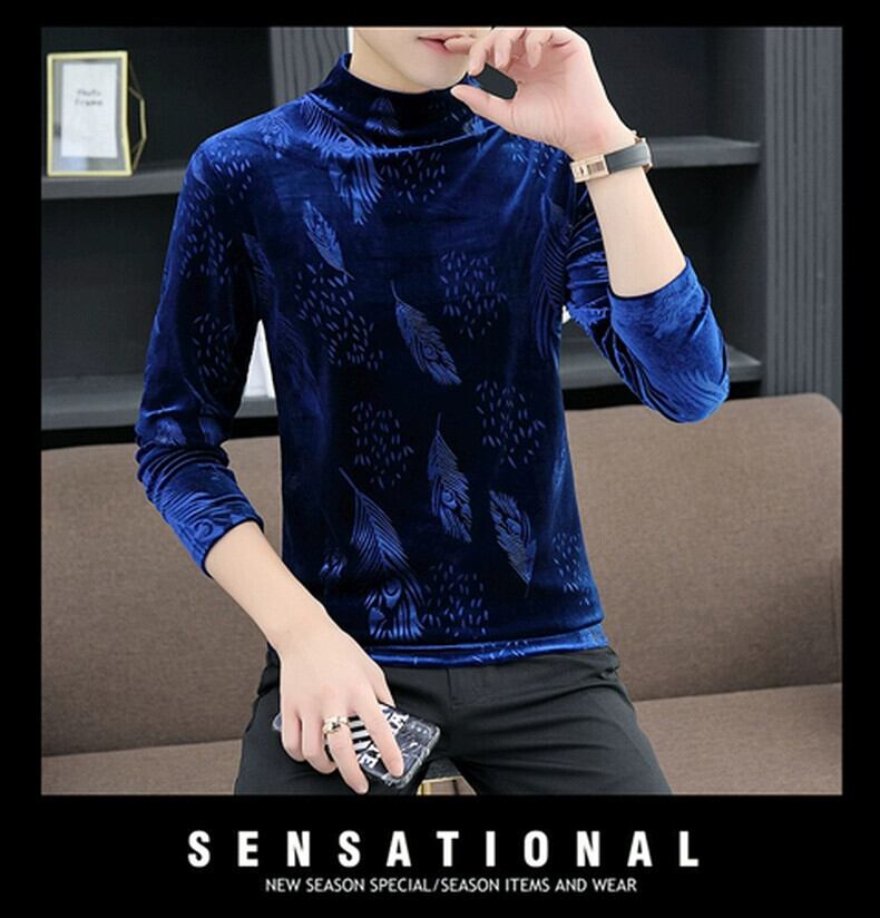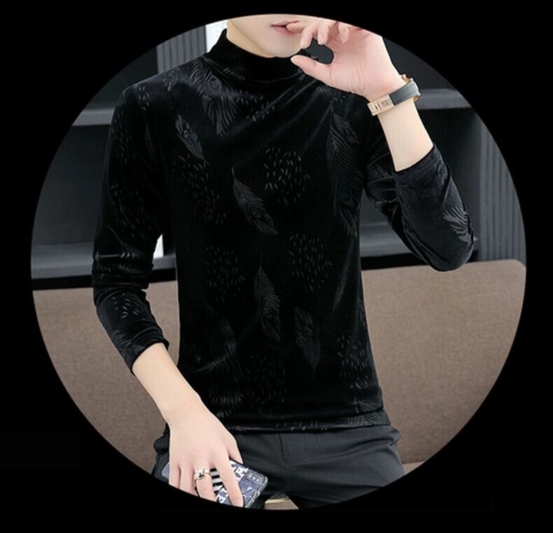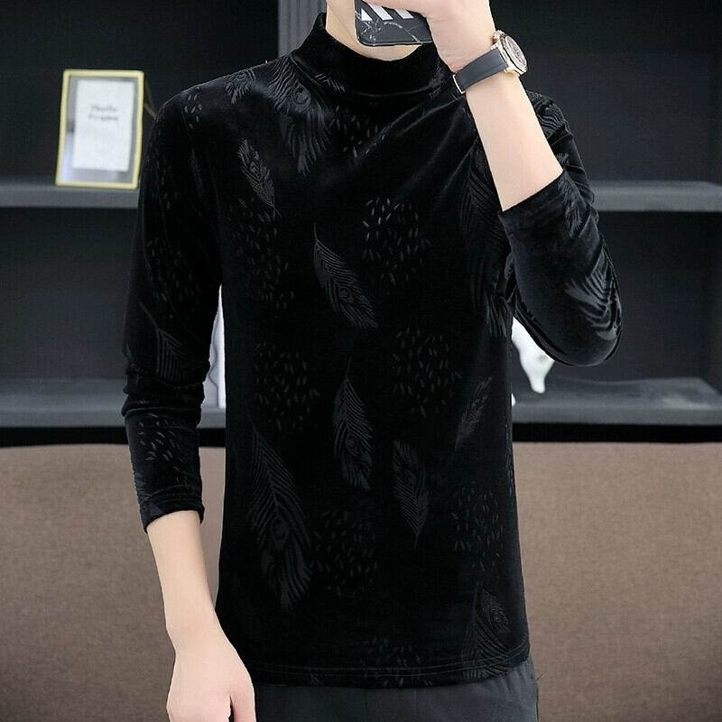 秋と冬のベルベット肥厚ゴールドベルベット長袖メンズミッドカラー秋コートボトリングシャツハーフタートルネックTシャツメンズセータートレンド ロング オータム 秋物 ウィンター 冬物 undao1738287845