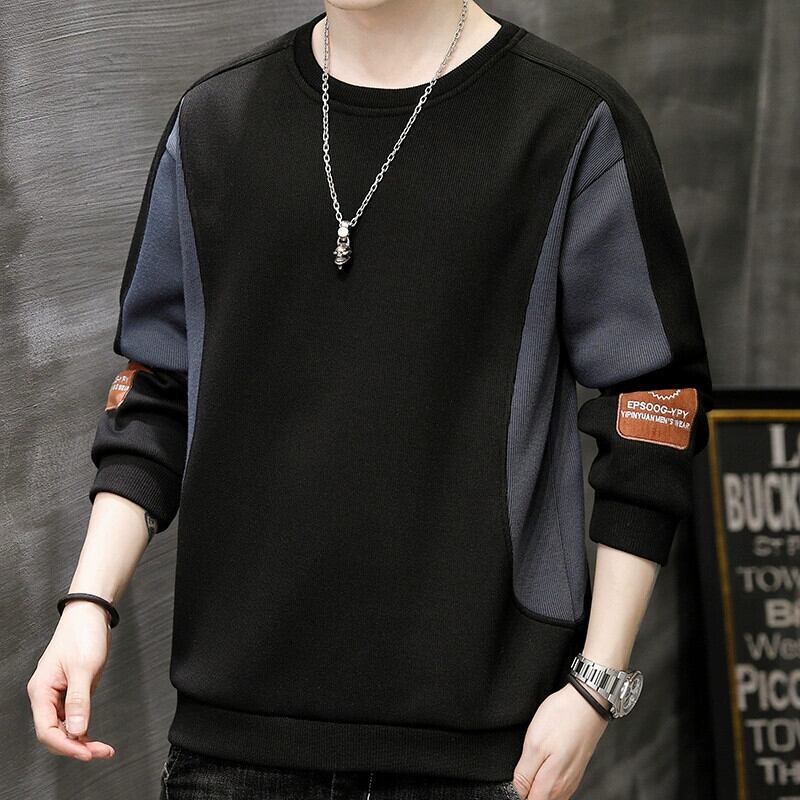 スウェット メンズ 2023 春、秋、冬の新作長袖 T シャツ、ゆったりとした大きいサイズ、ラウンドネック、トレンディなベルベット メンズ トップス ロング 大きめサイズ スプリング 春物 オータム 秋物 ウィンター 冬物 Oネック Tシャツ undao65156194091
