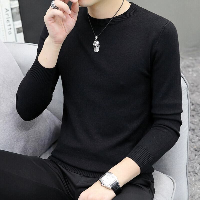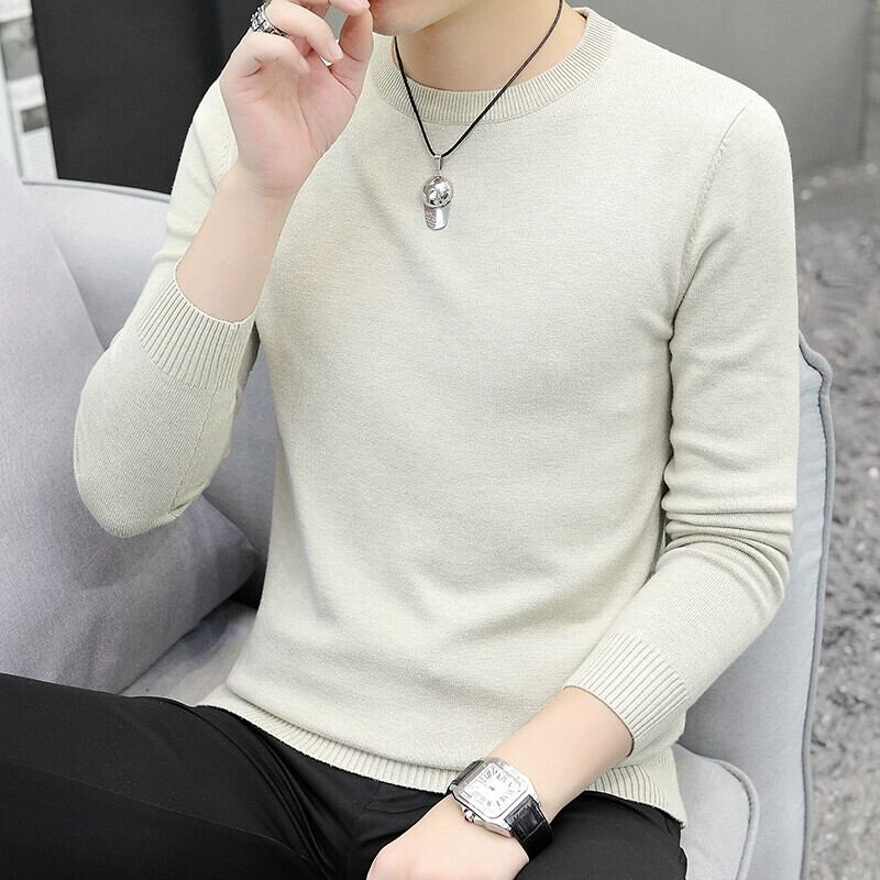 2023 新しい秋のラウンドネック純白のセーターメンズニット底セーターハンサムな秋のインナートップ ホワイト オータム 秋物 Oネック ピュア undao48654898666