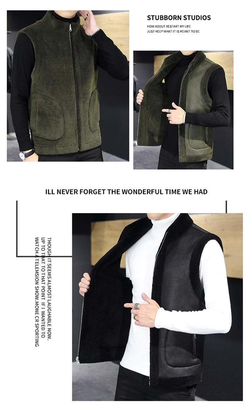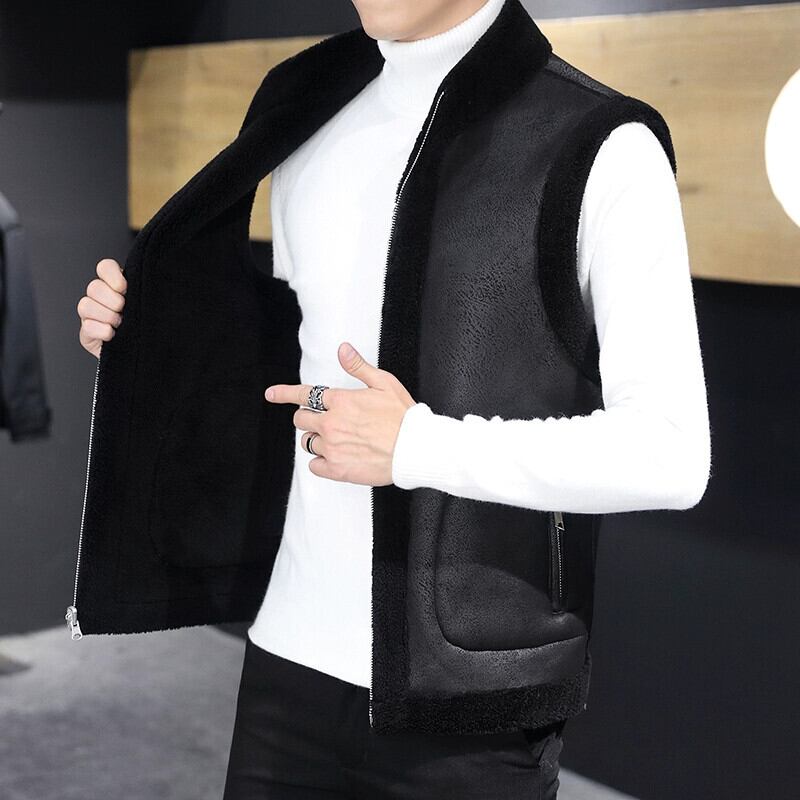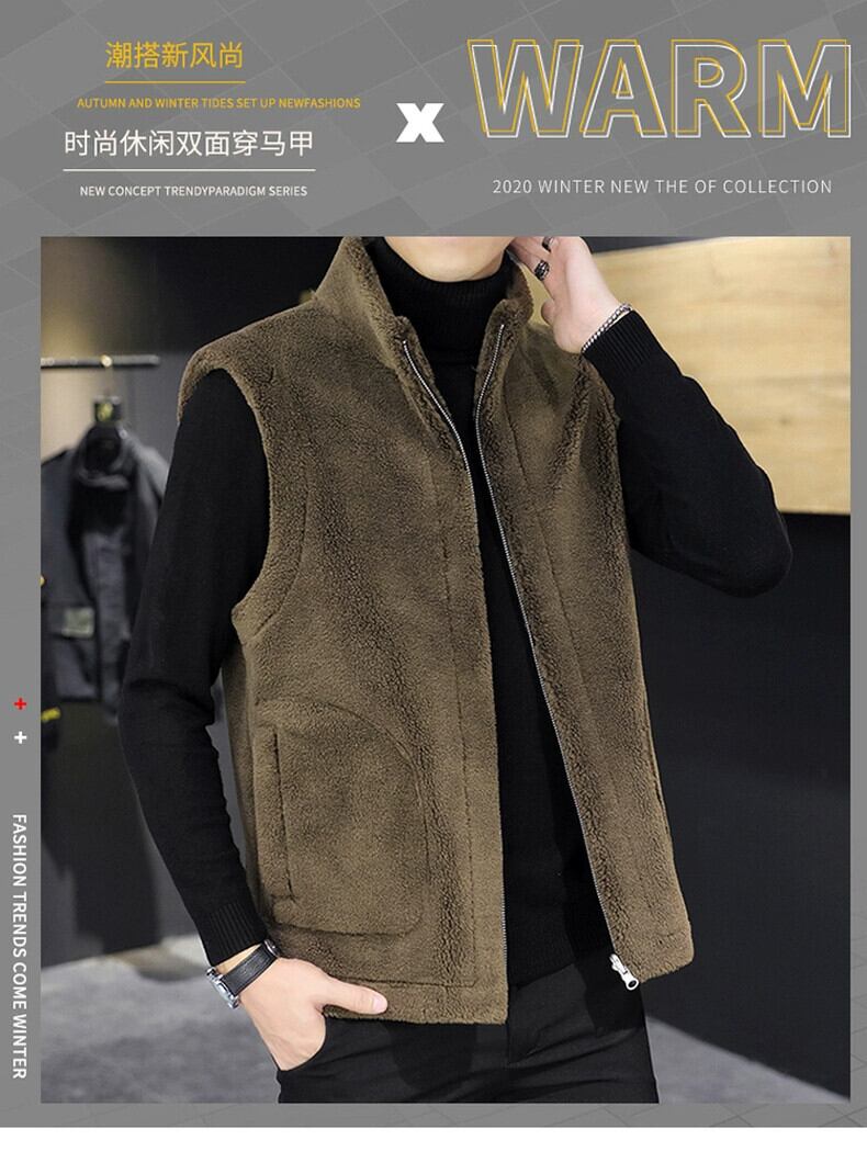 秋と冬のラムベルベットベストメンズ 2023 新しいノースリーブベストチョッキトレンディな暖かい両面レザージャケット オータム 秋物 ウィンター 冬物 undao24687905481