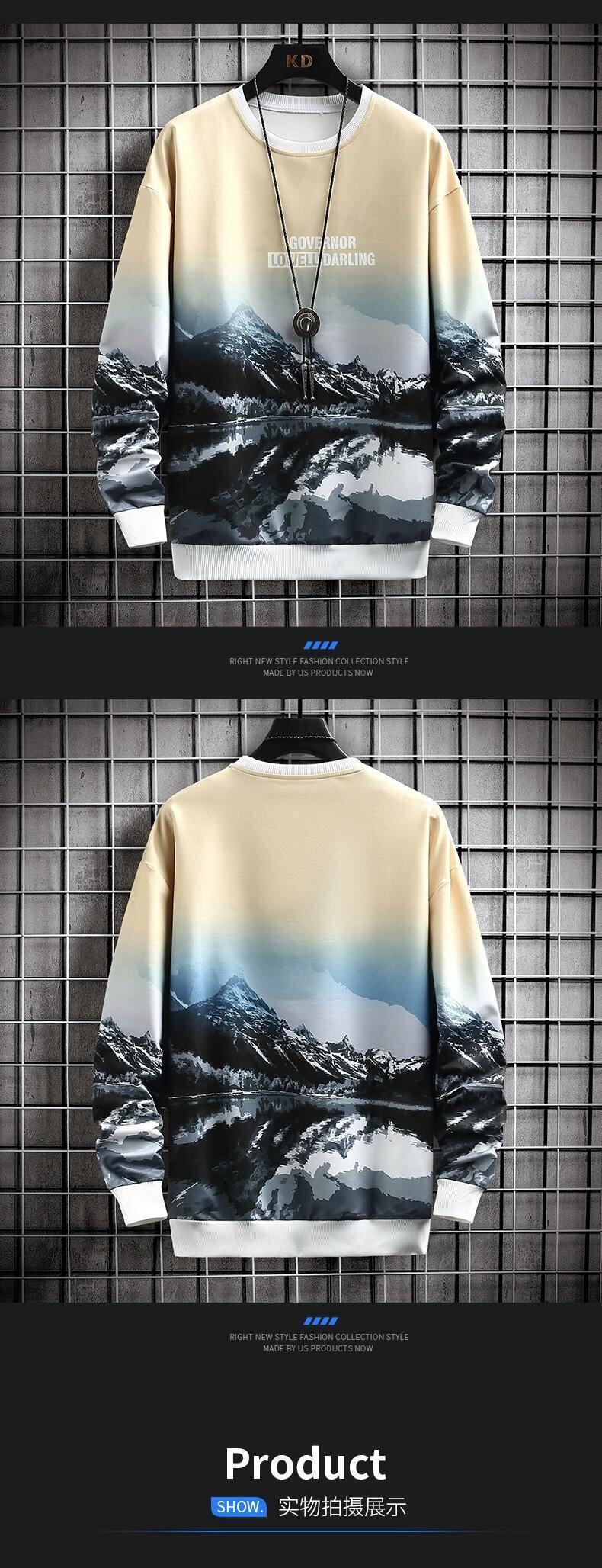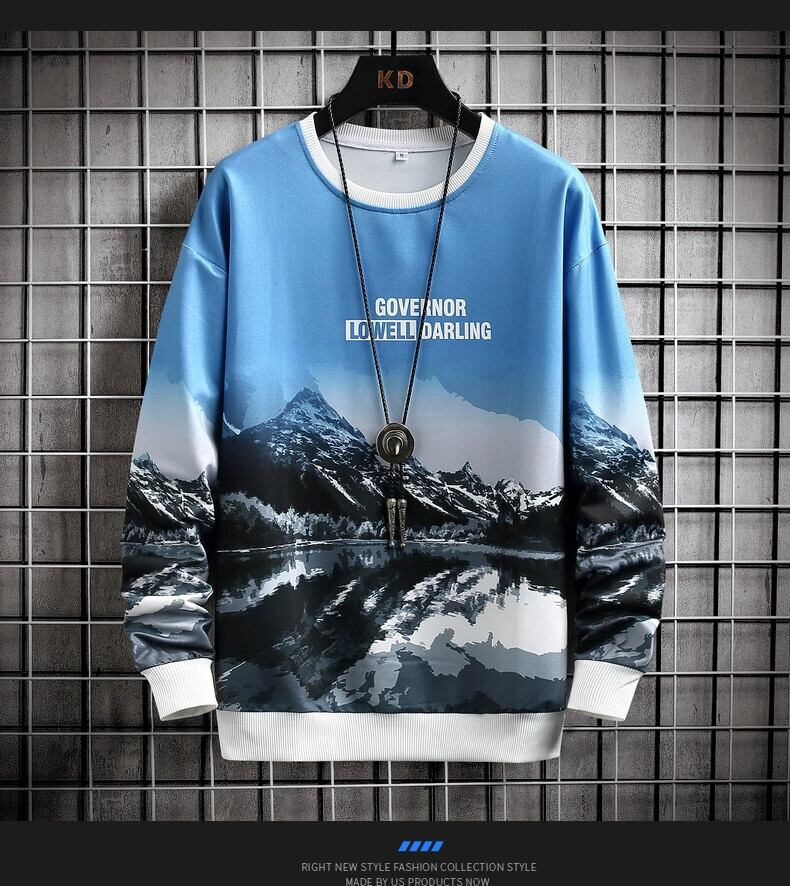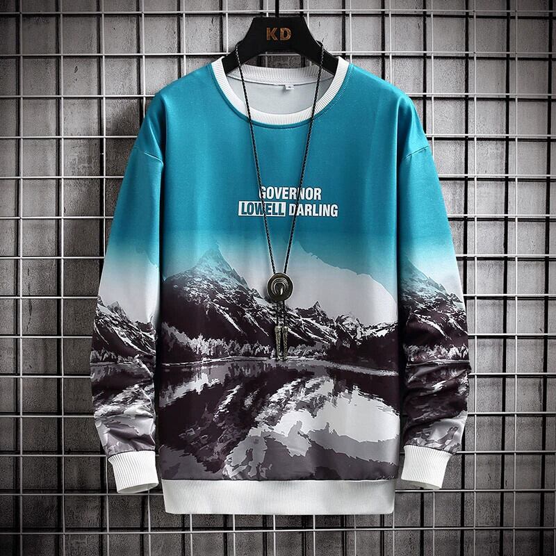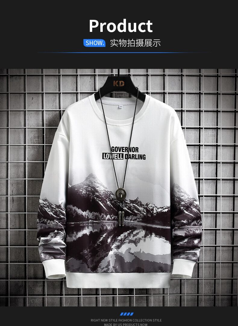 メンズスウェットシャツラウンドネックイントレンディなブランド春と秋の長袖Tシャツボトムシャツスタイルトレンディなルーズトップ ロング スプリング 春物 オータム 秋物 Oネック undao59004241076