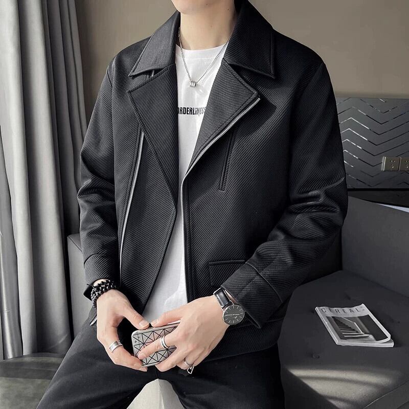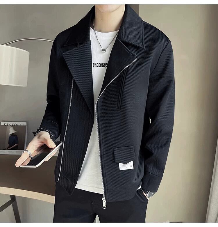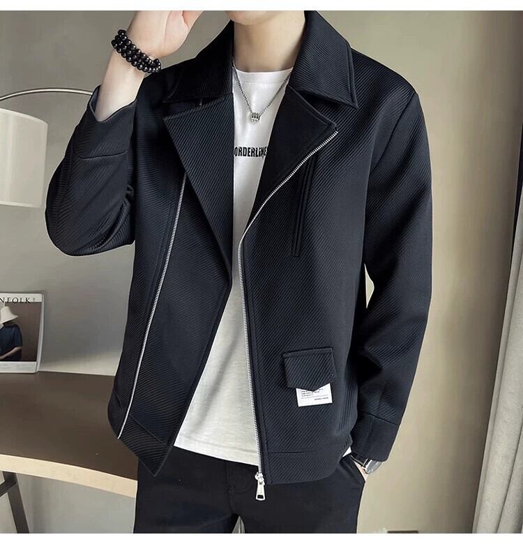 斜めのジッパーのファッショナブルなジャケット、トレンディなブランドメンズ秋冬 2023 新しいハイエンドのハンサムなショート ウインドブレーカー コート オータム 秋物 ウィンター 冬物 undao68044842888