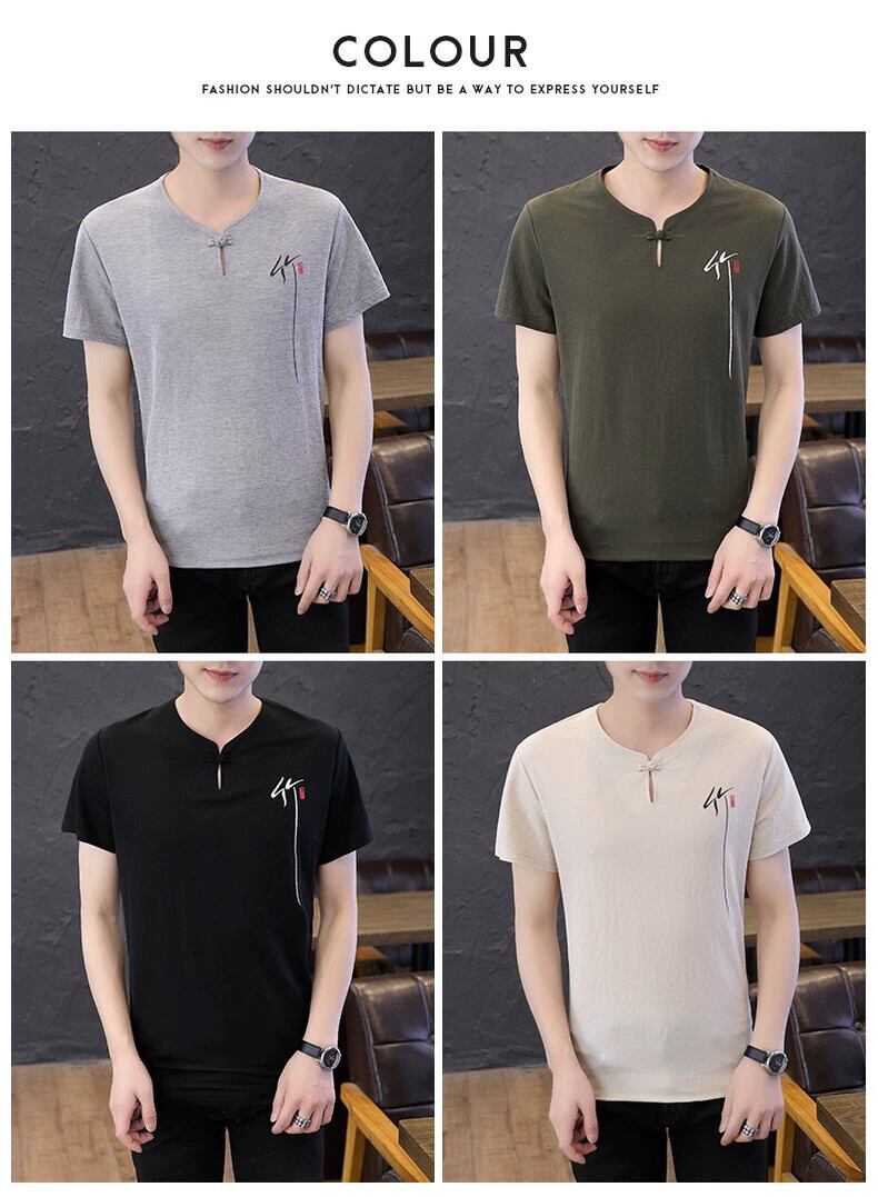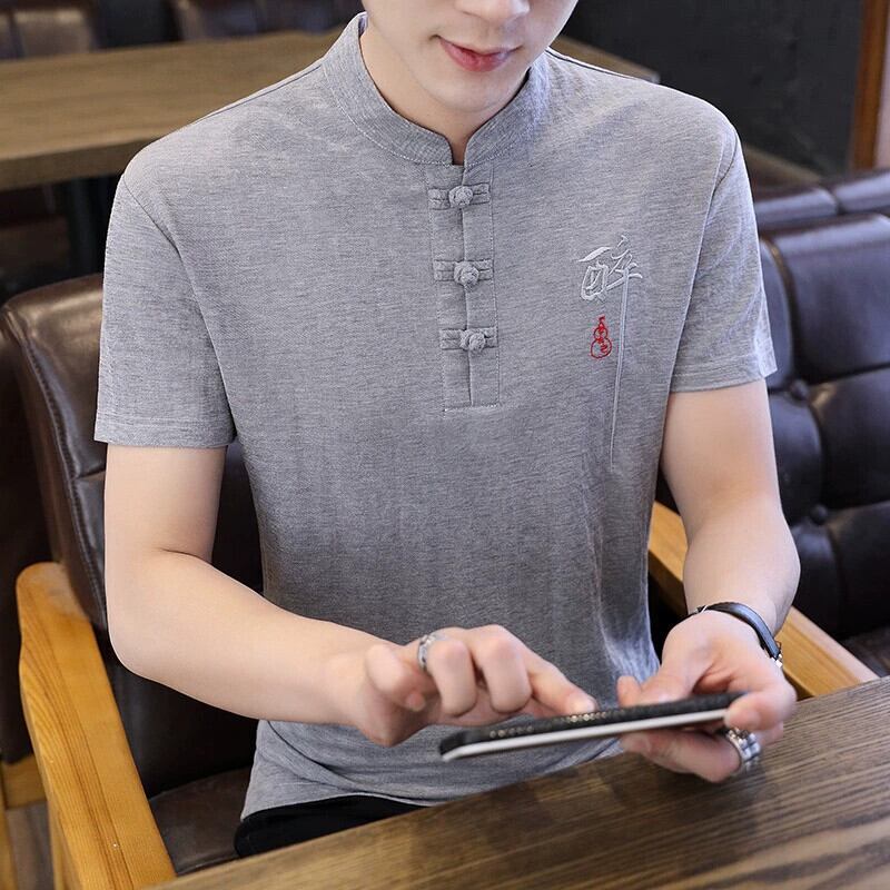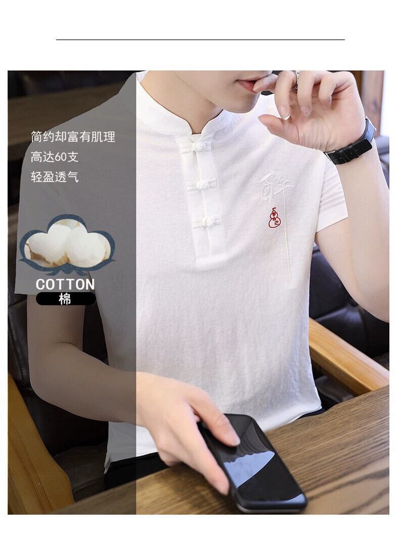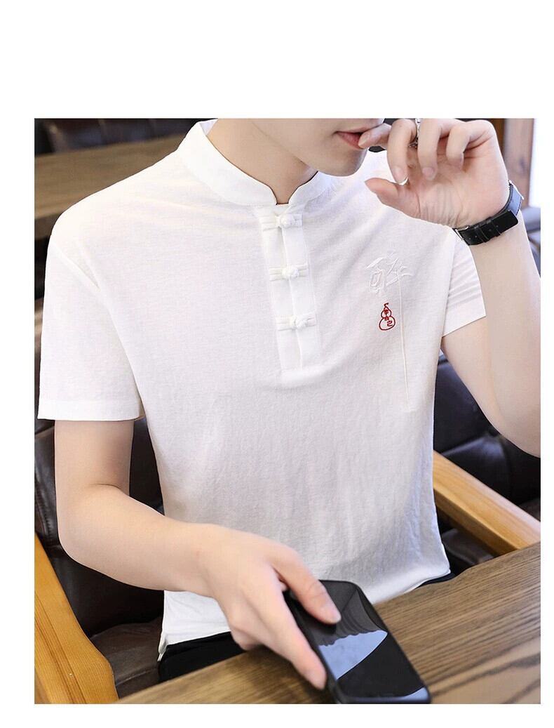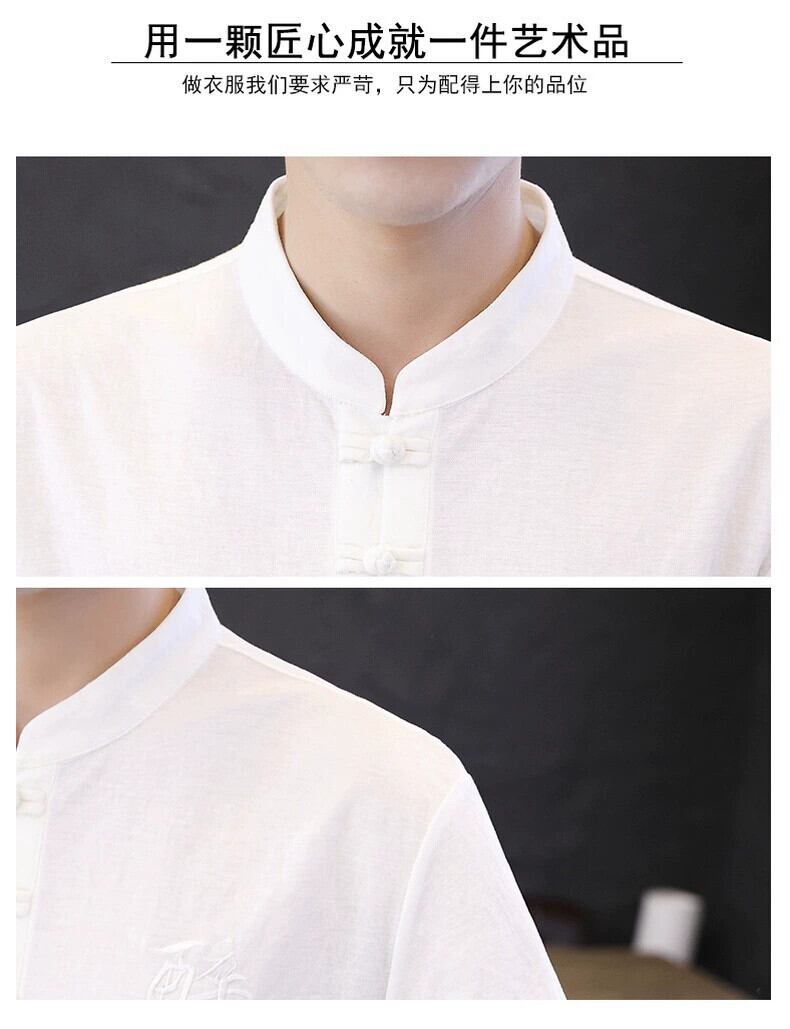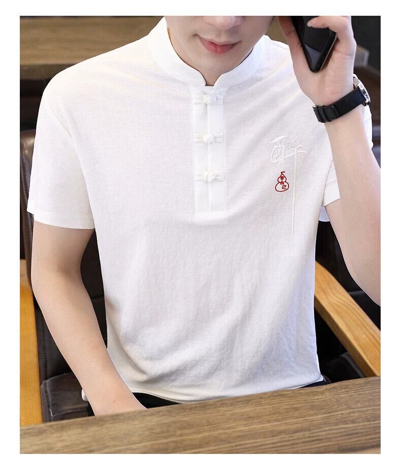 中国風リネン Tシャツメンズ半袖春と夏の刺繍中国唐スーツメンズ綿とリネンのボトリングシャツ レッド コットン スプリング 春物 サマー 夏物 undao17122752371