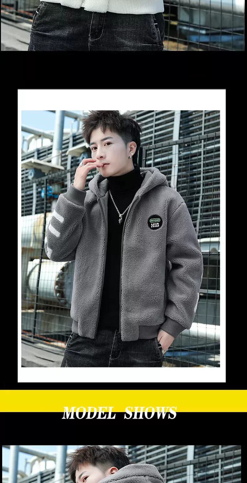 ラムウールジャケットメンズフード付き肥厚冬綿服スタイルトレンディなハンサムな豪華な綿ジャケット秋と冬 コットン オータム 秋物 ウィンター 冬物 undao64158201977
